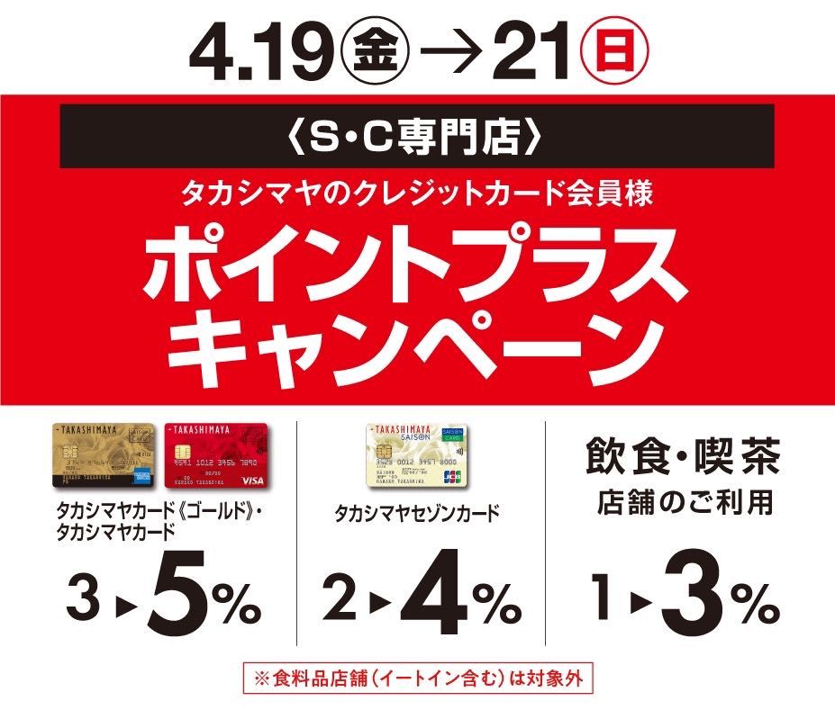 タカシマヤカードポイントプラスのお得な3日間、皆様のご来店お待ちしております。
