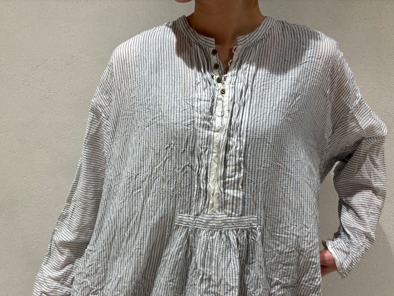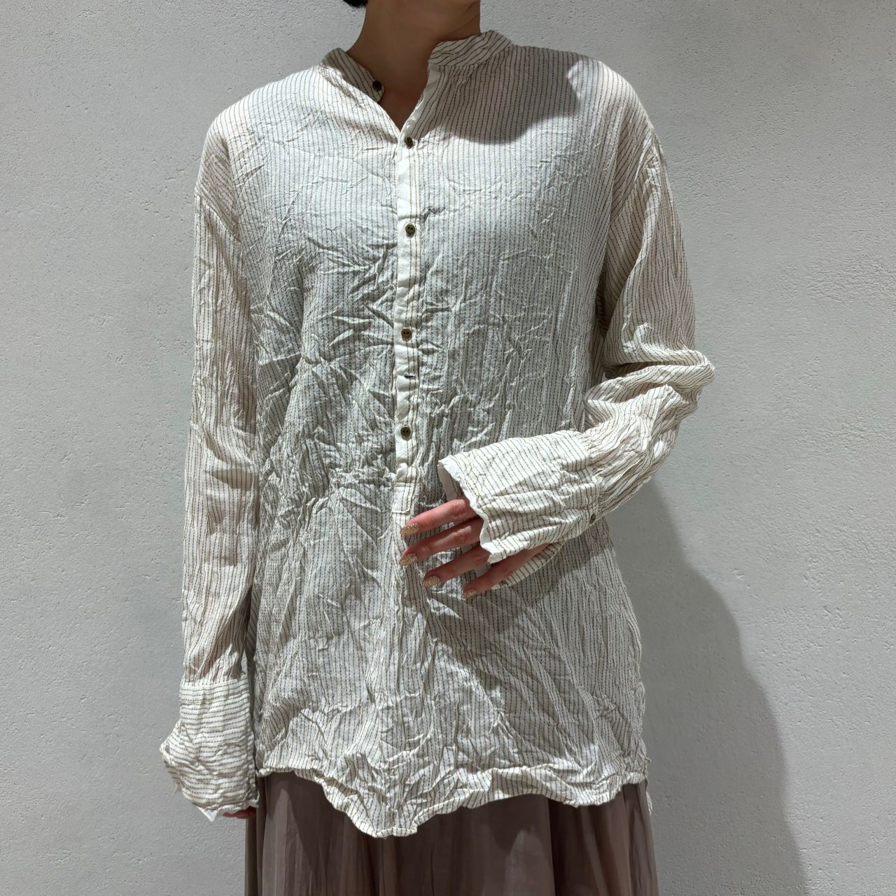 スタンドカラーのシンプルブラウス。