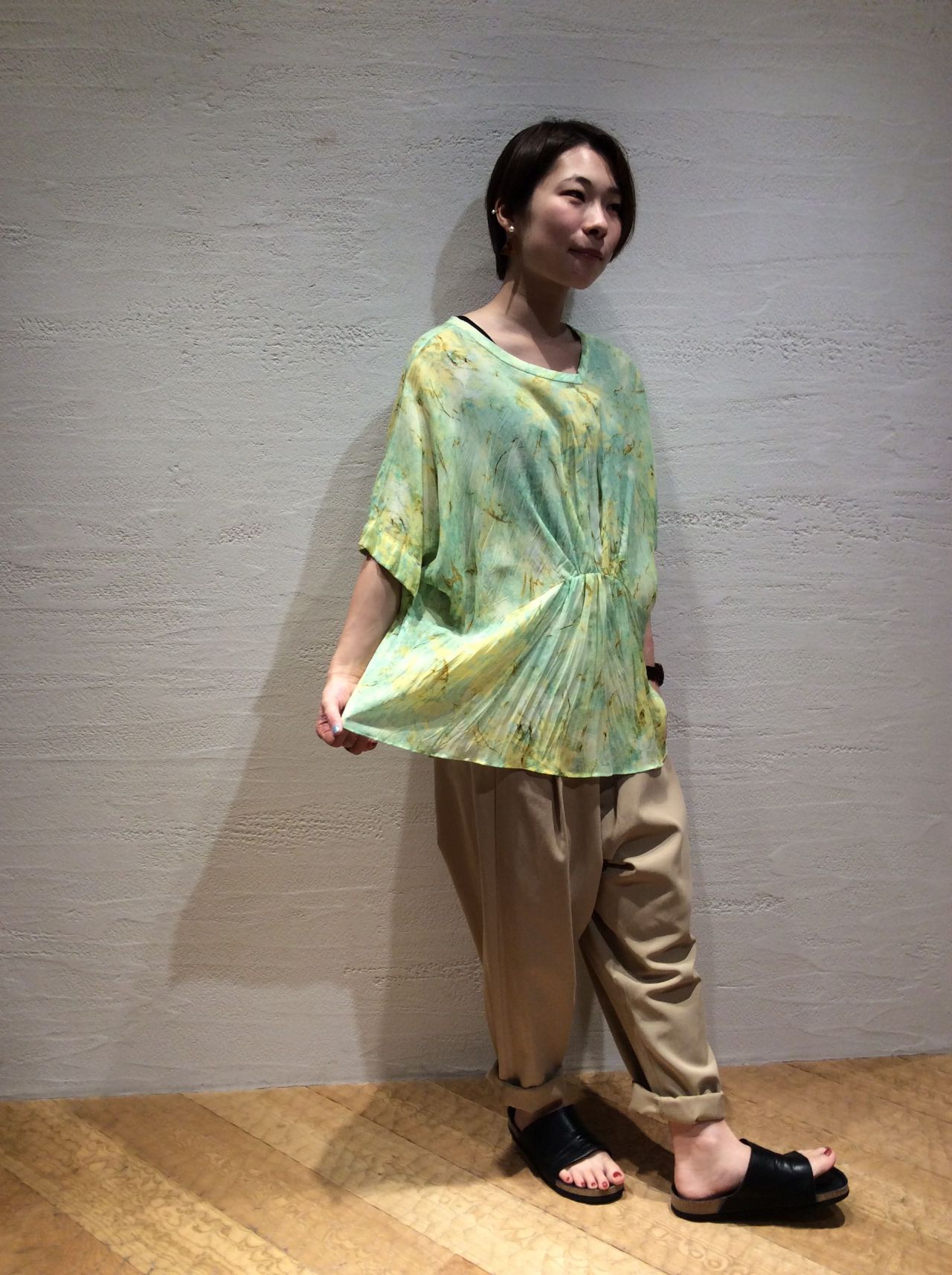 リヨセルボイルカヘンデプリントブラウス(着用:グリーン)