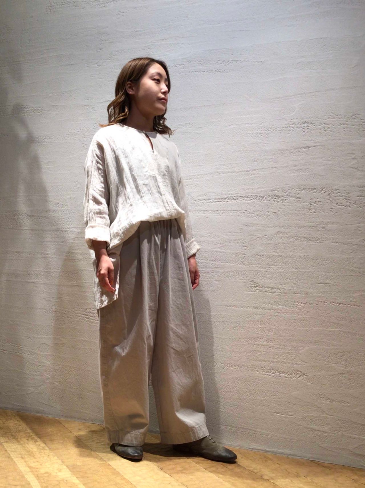 リネンの柔らかなブラウスはナイロンを混紡する事でお手入れがしやすく、デイリー使いにぴったりなアイテム。