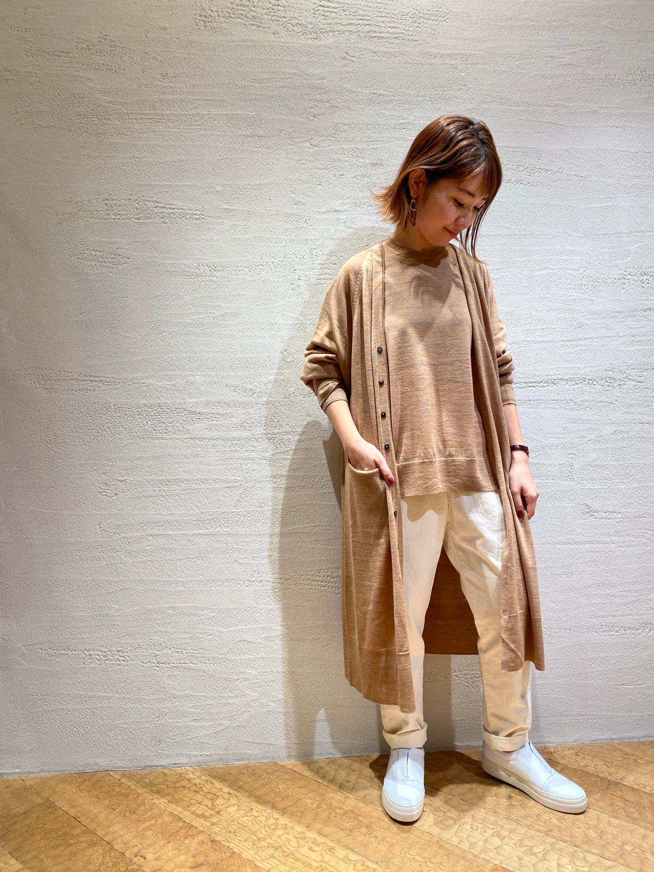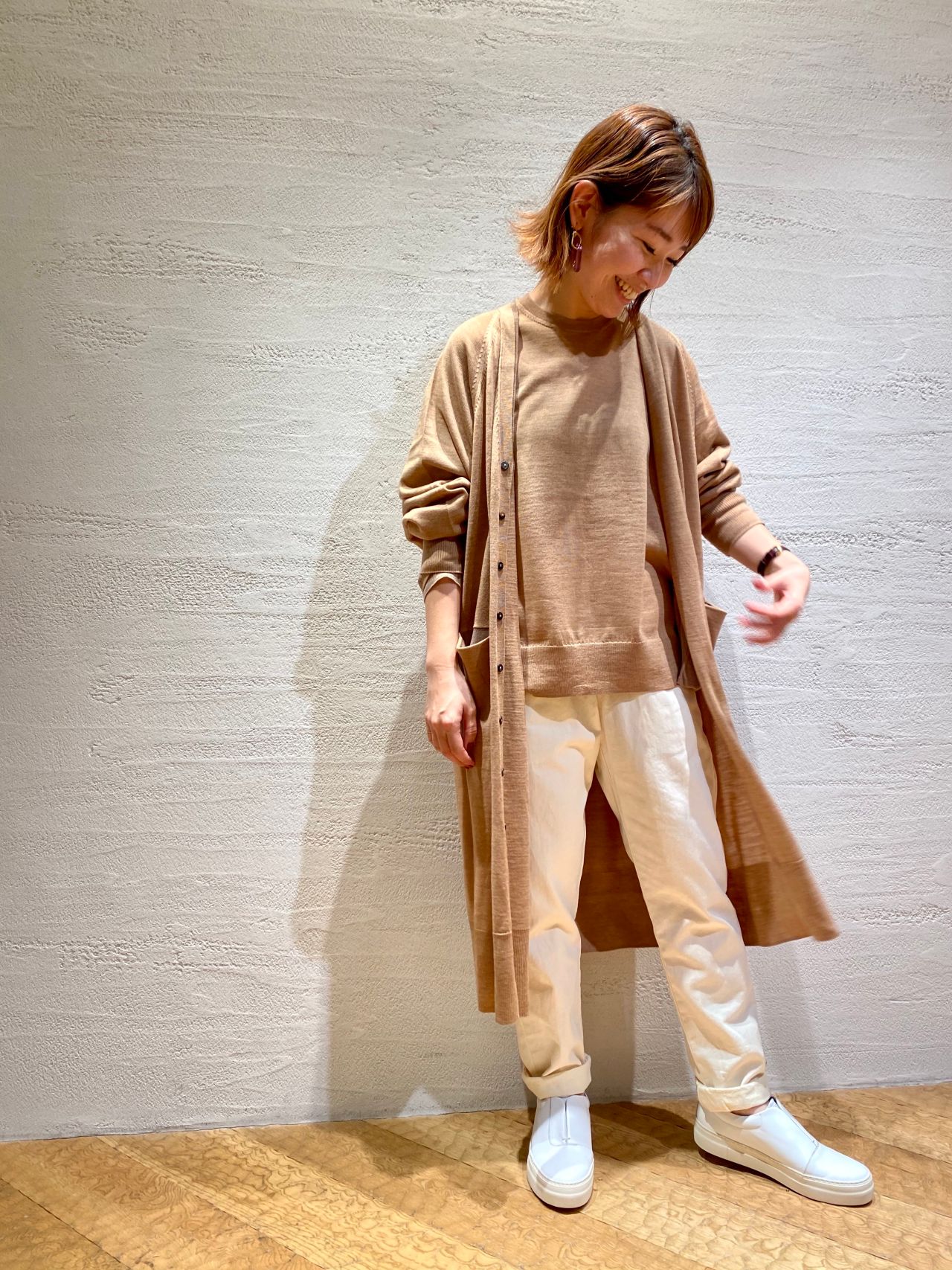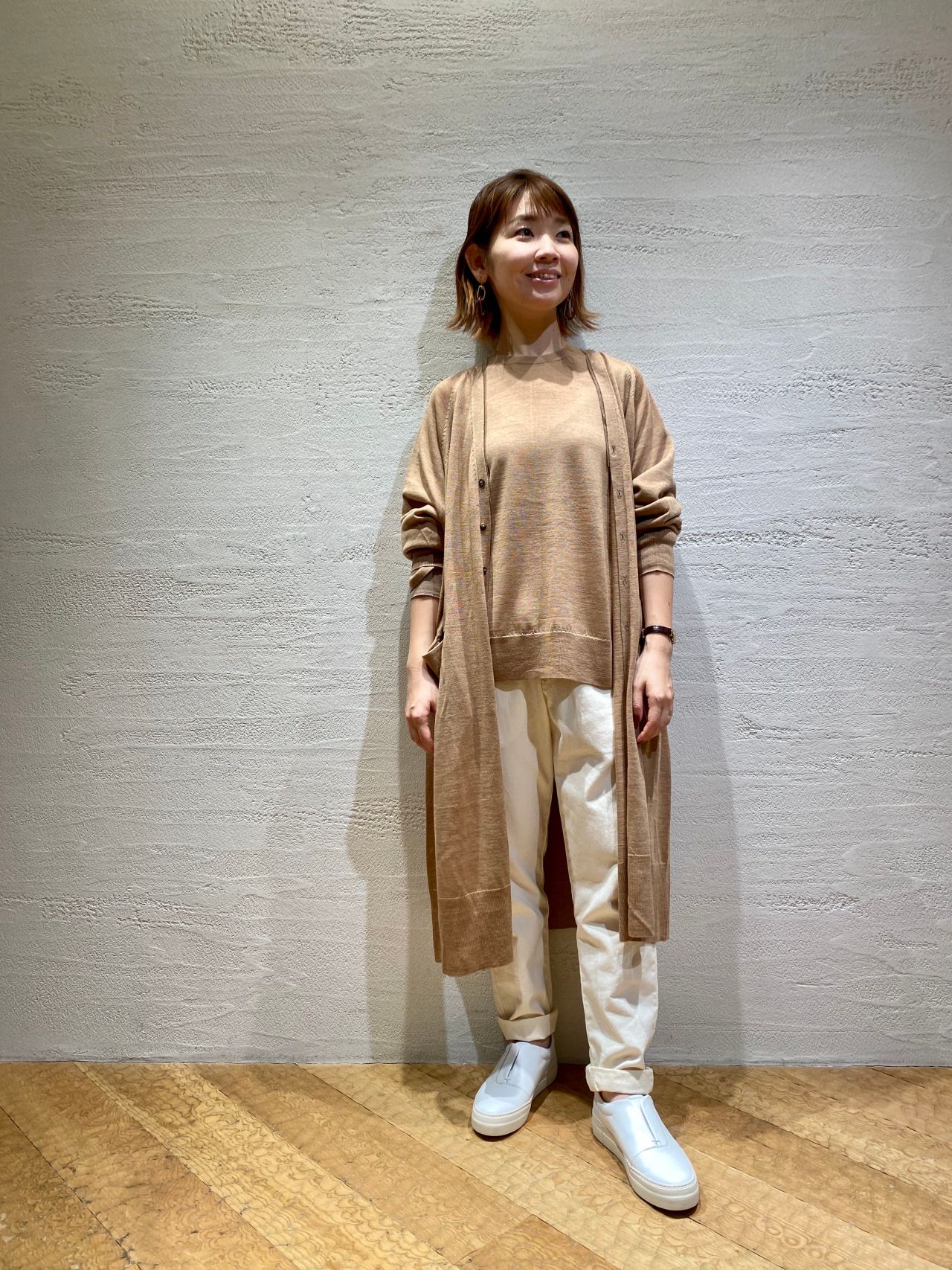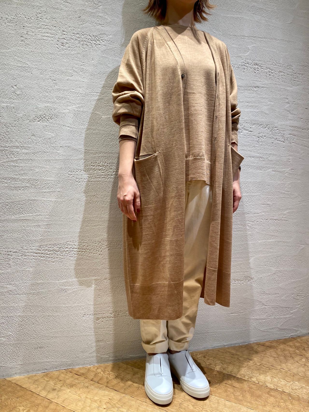 バソラン・メリノウールロングカーディガン(着用:キャメル size.36)