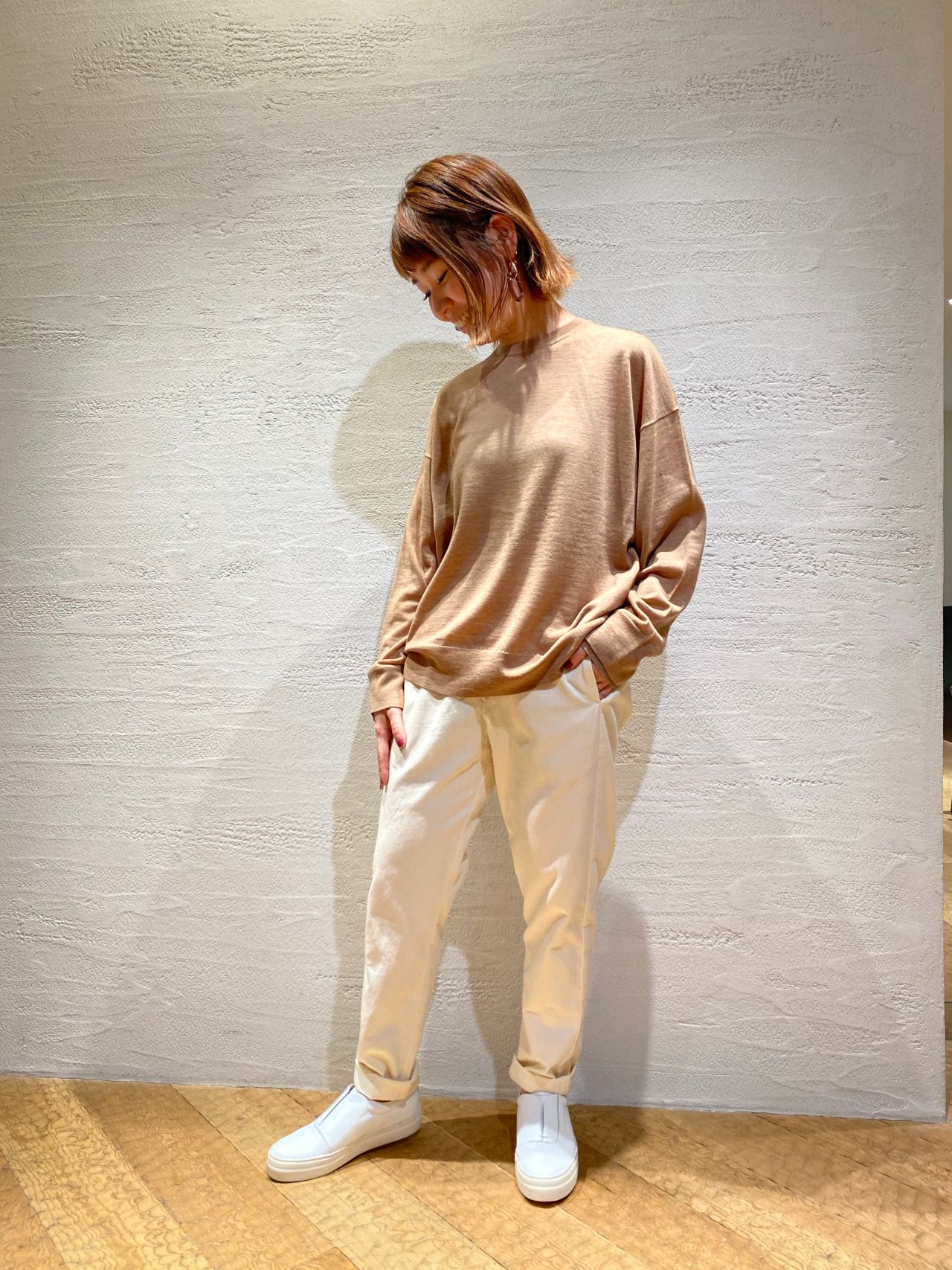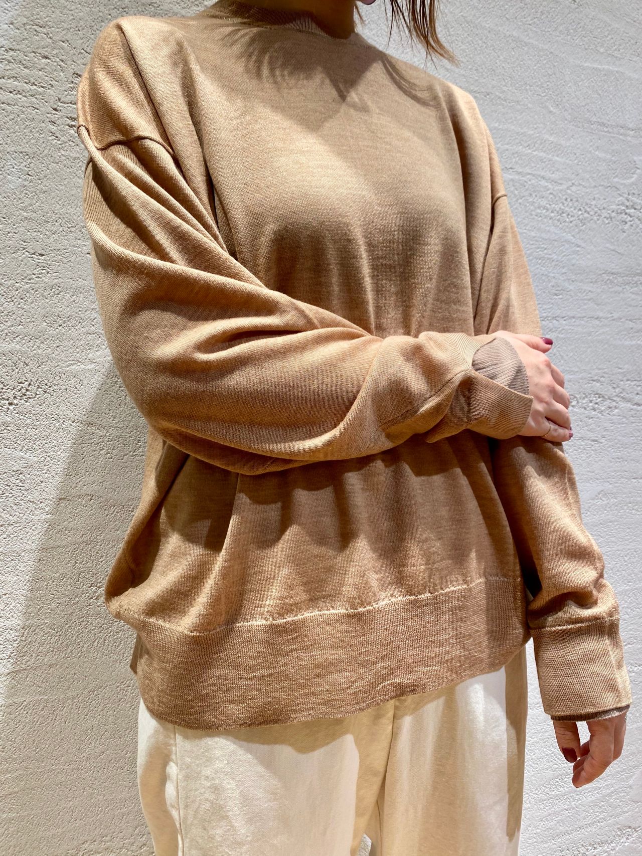 バソラン・メリノウールプルオーバー(着用:キャメル size.36)
