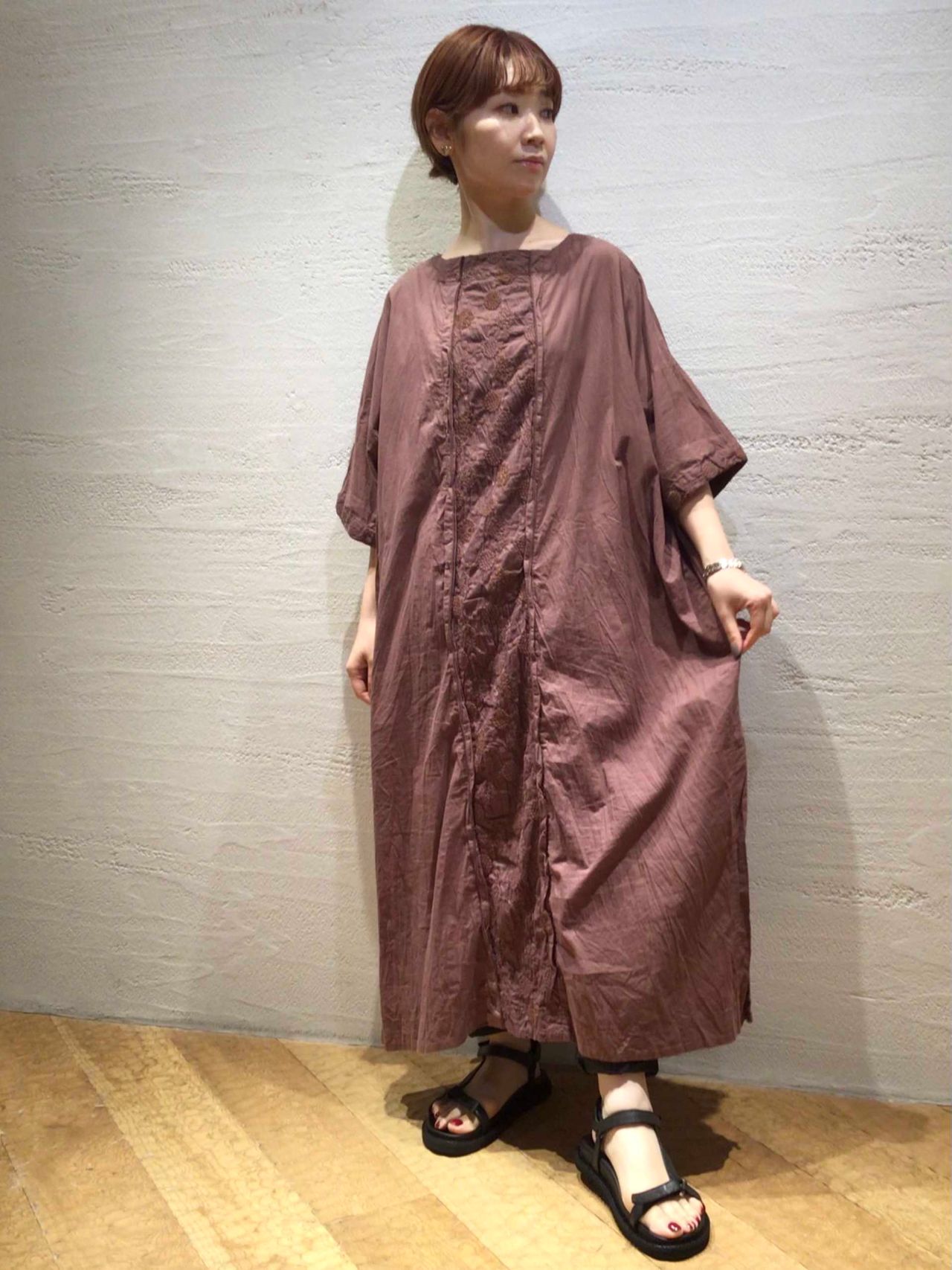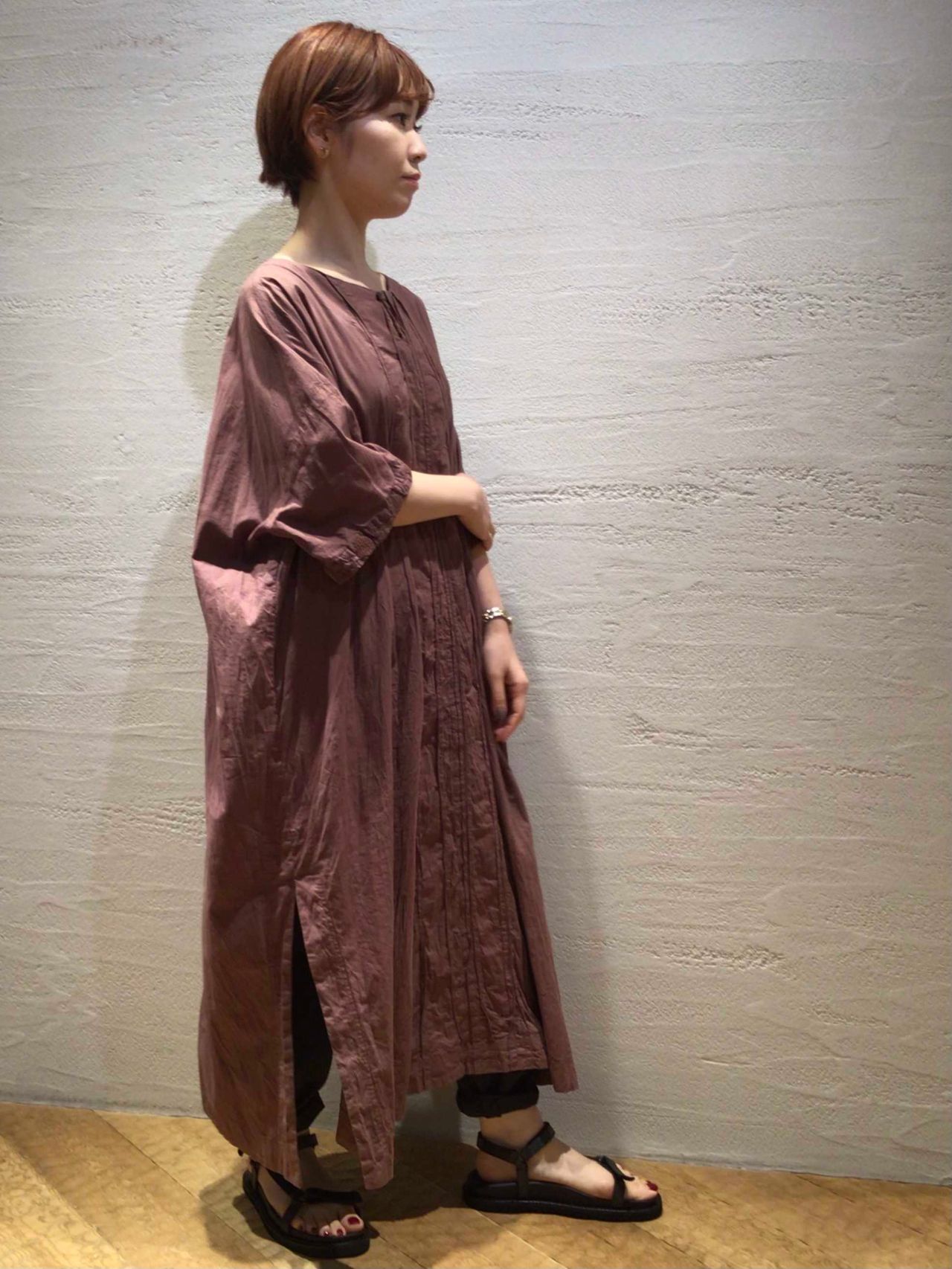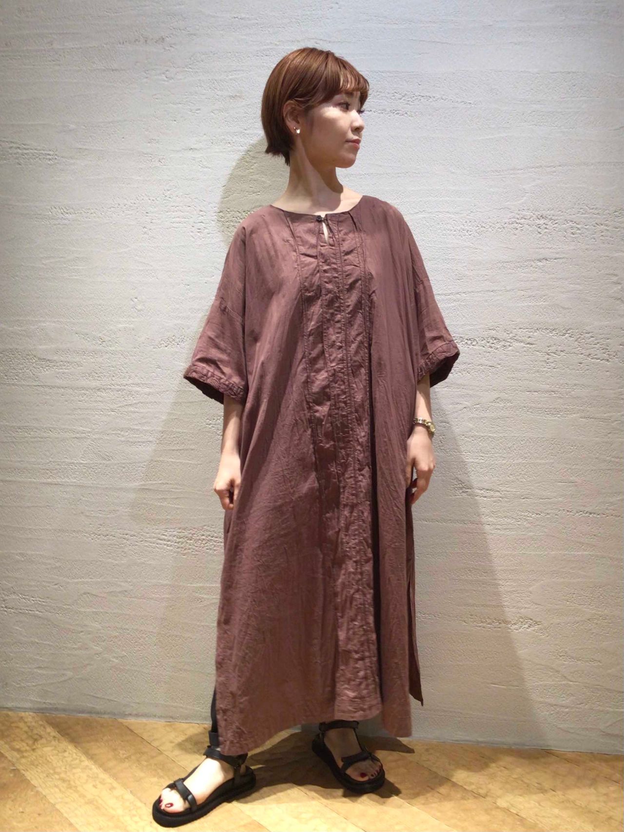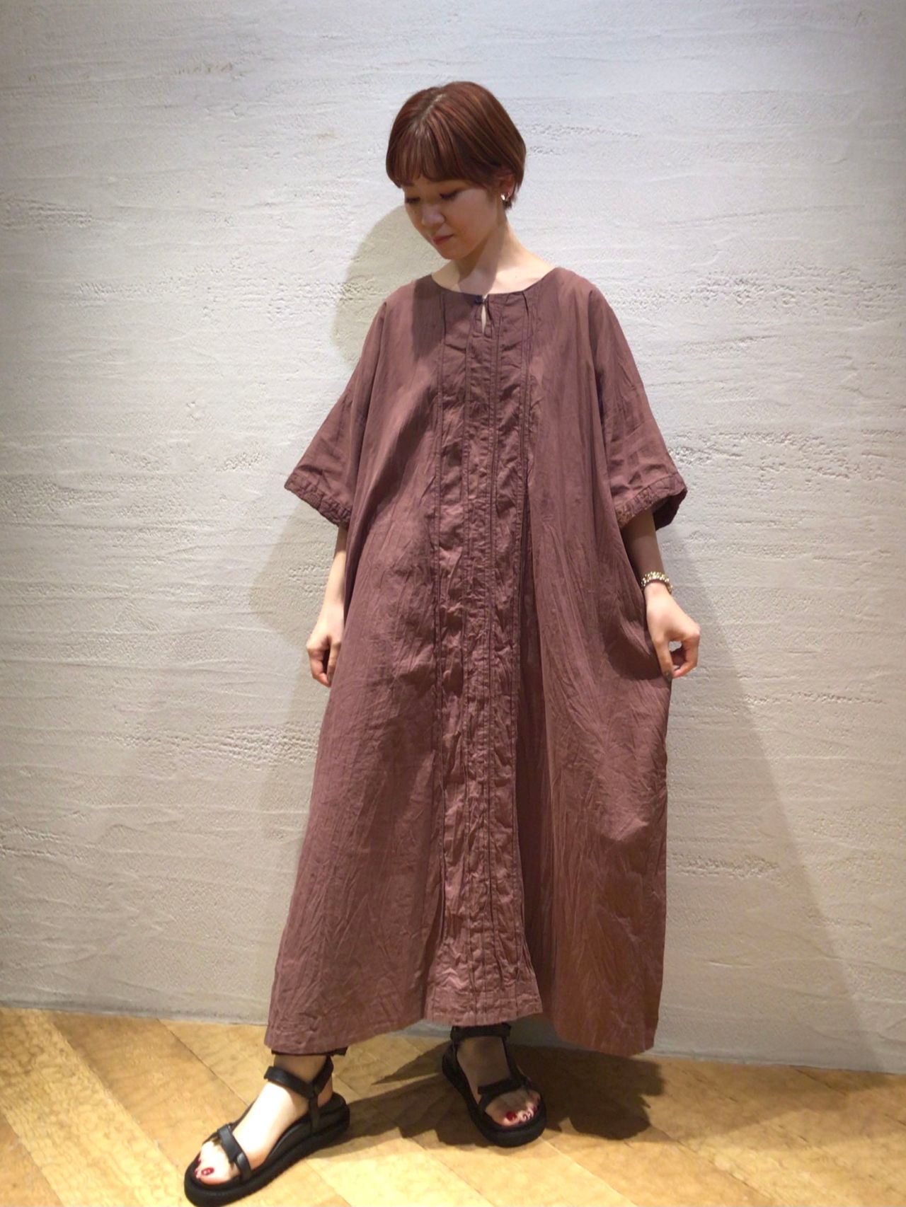 暑い時期からさらりと着れるサックドレス。