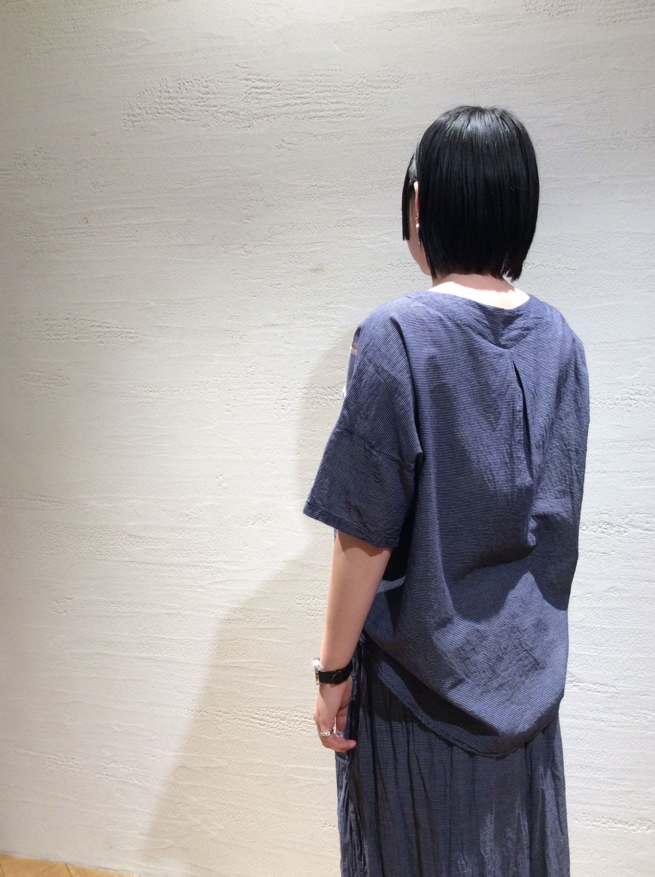 前身頃は、ワイドボーダーと細いボーダーの切り替えでデザイン性がありますが、後身頃は細いボーダーでスッキリと。