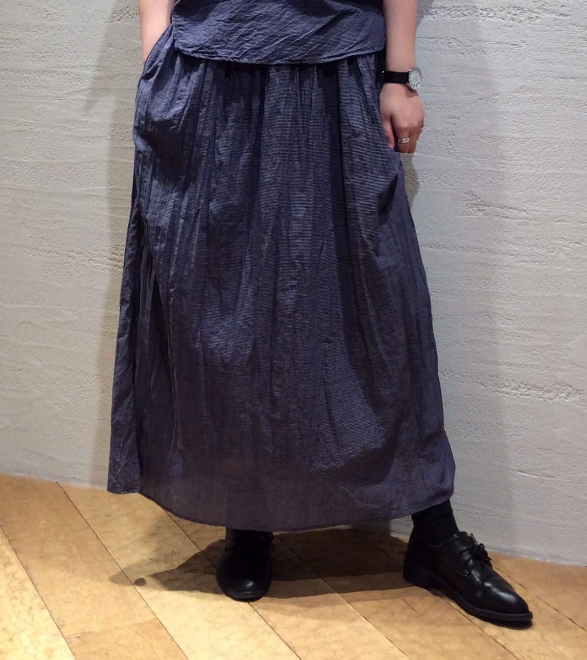 総ゴムで履きやすく、腰周りが広がり過ぎない綺麗なラインのロングギャザースカートです。