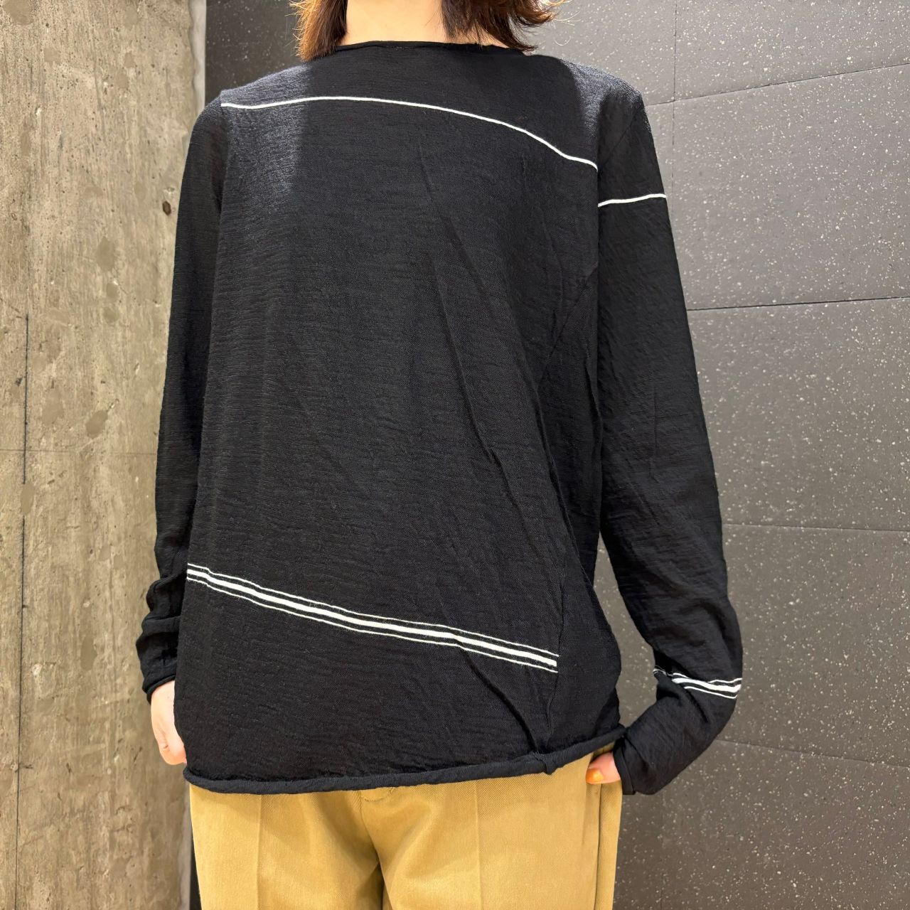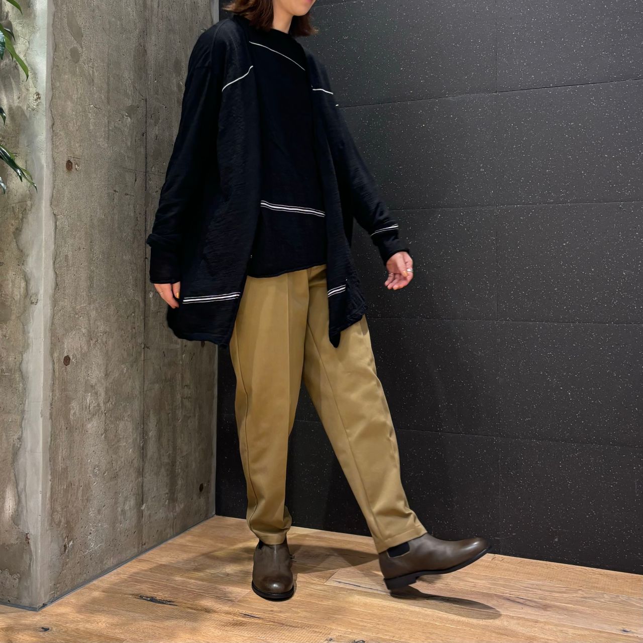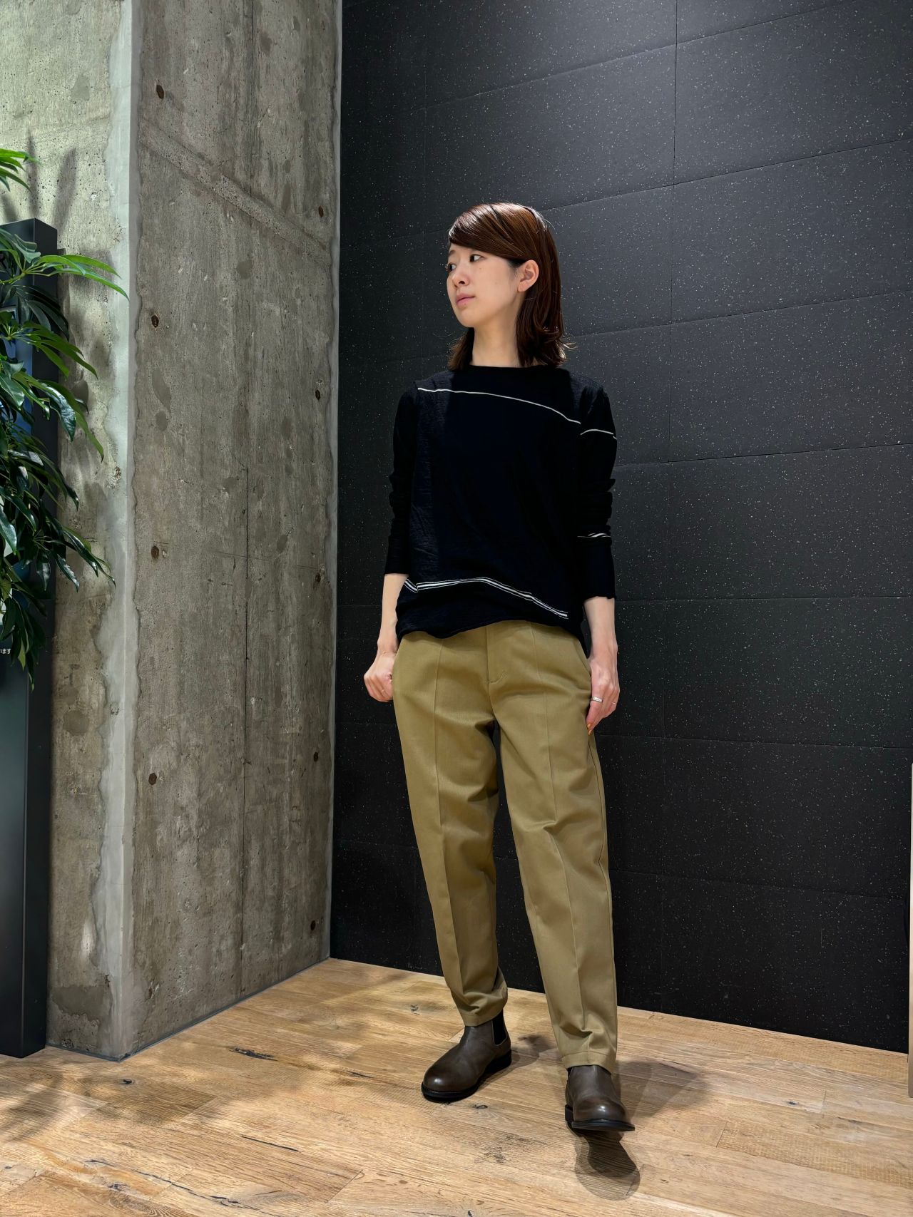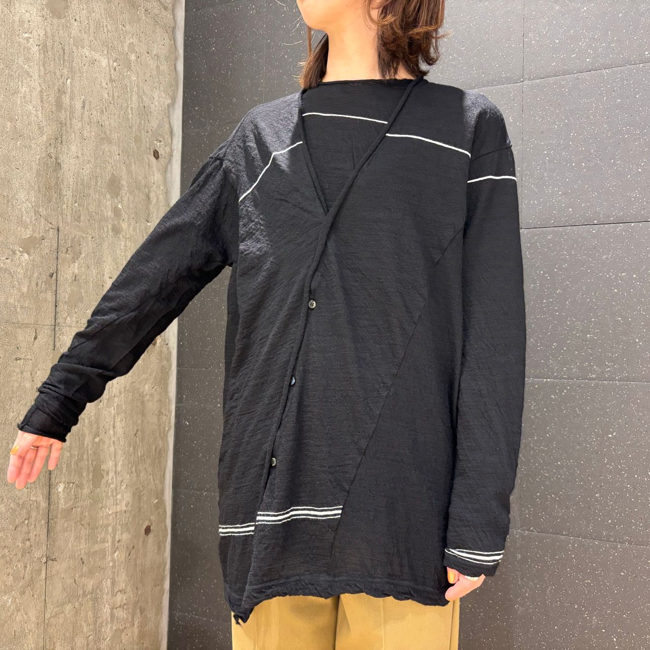 シンプルなシルエットにパネルボーダー柄が映えるカーディガンとプルオーバーの2型。