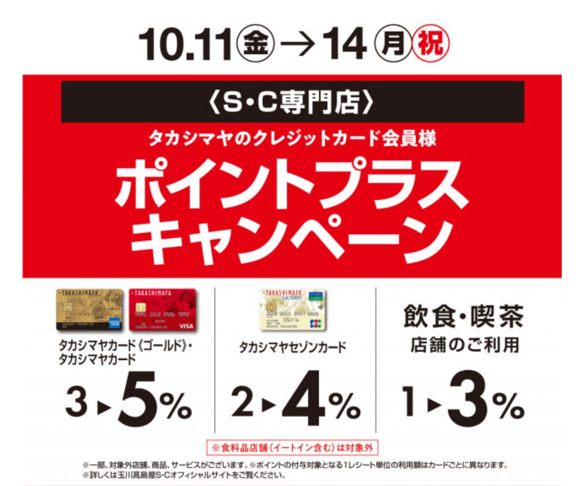 上記の4日間限定で、タカシマヤのクレジットカードによるご利用のお客様に、通常ポイントに加え2%ポイントをプラスいたします。