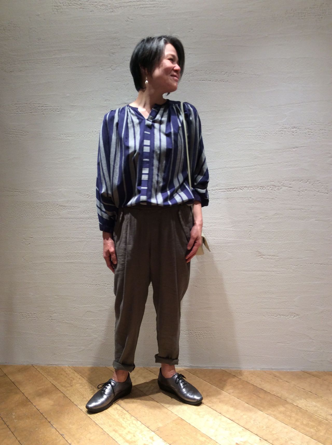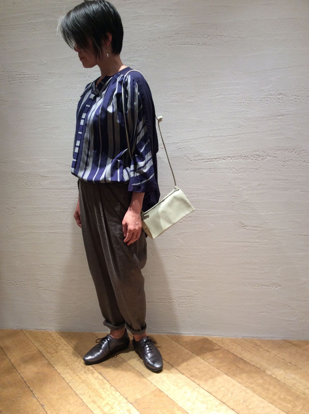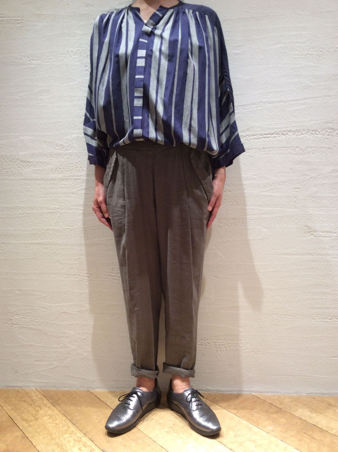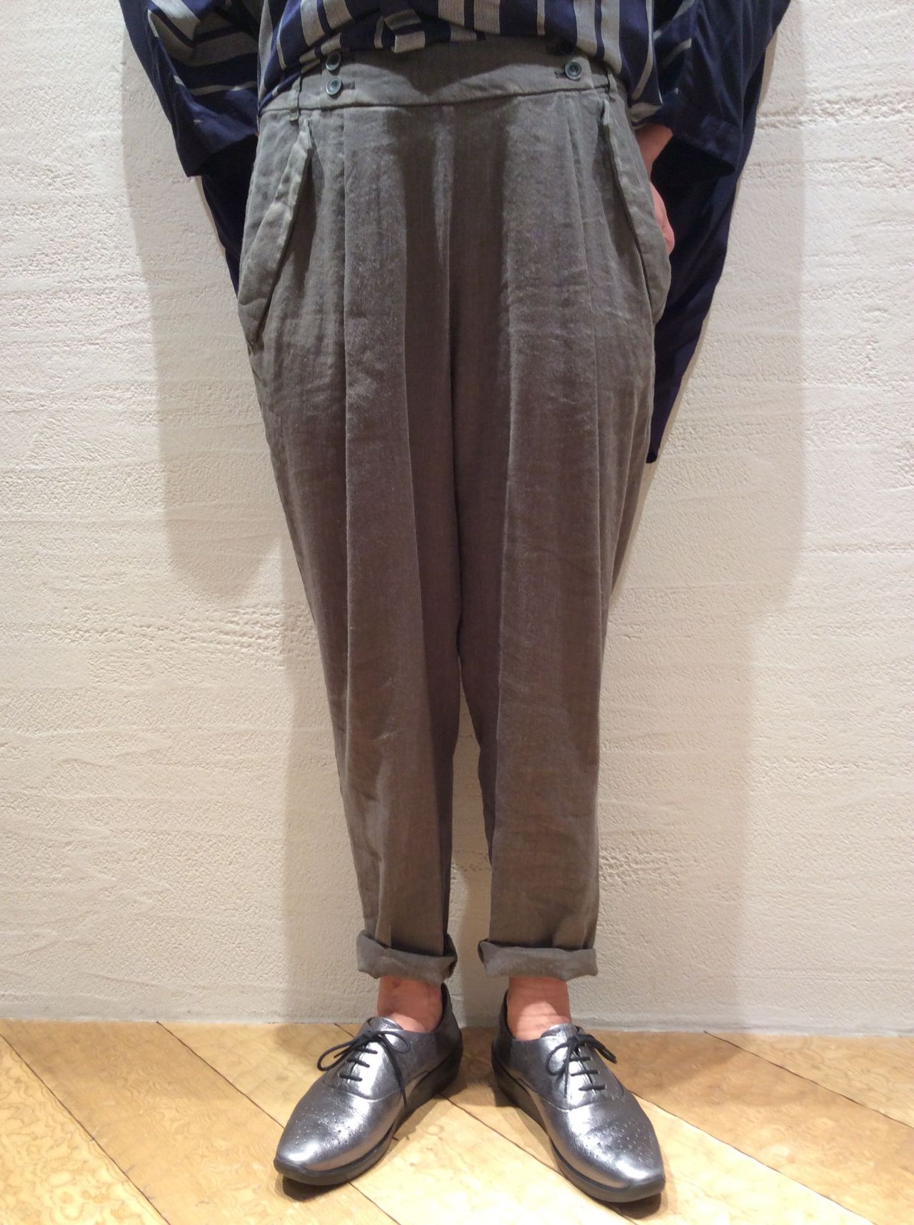 パンツは昨年も好評だったリネンヴィスコースストレッチ素材のパンツでシンプルに合わせました。