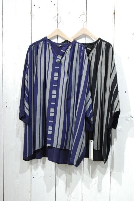 シックスシン・ストライプブラウス (着用:ブルー)