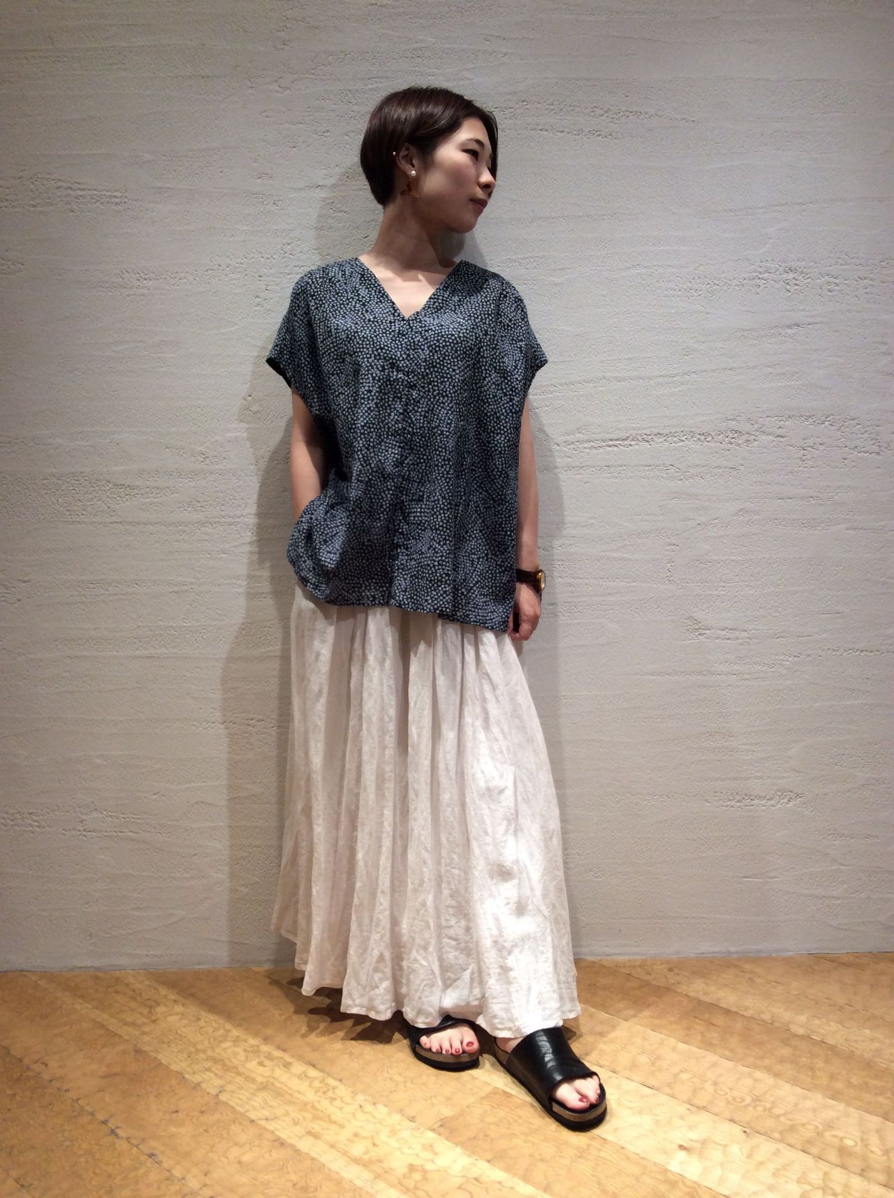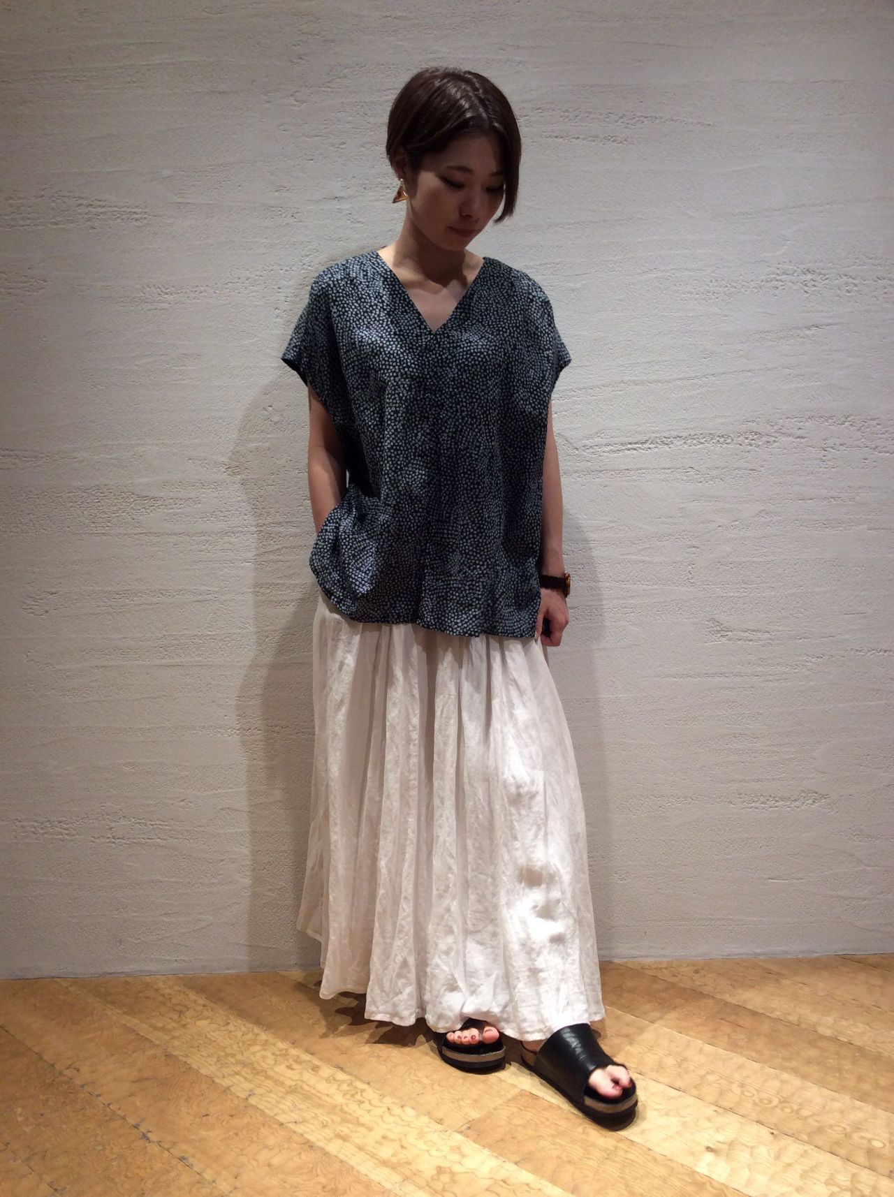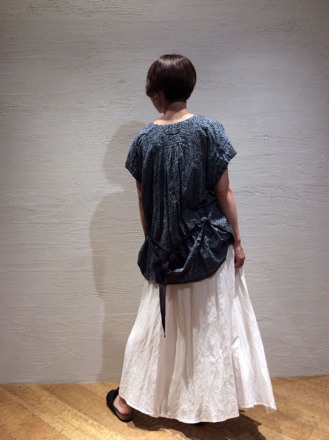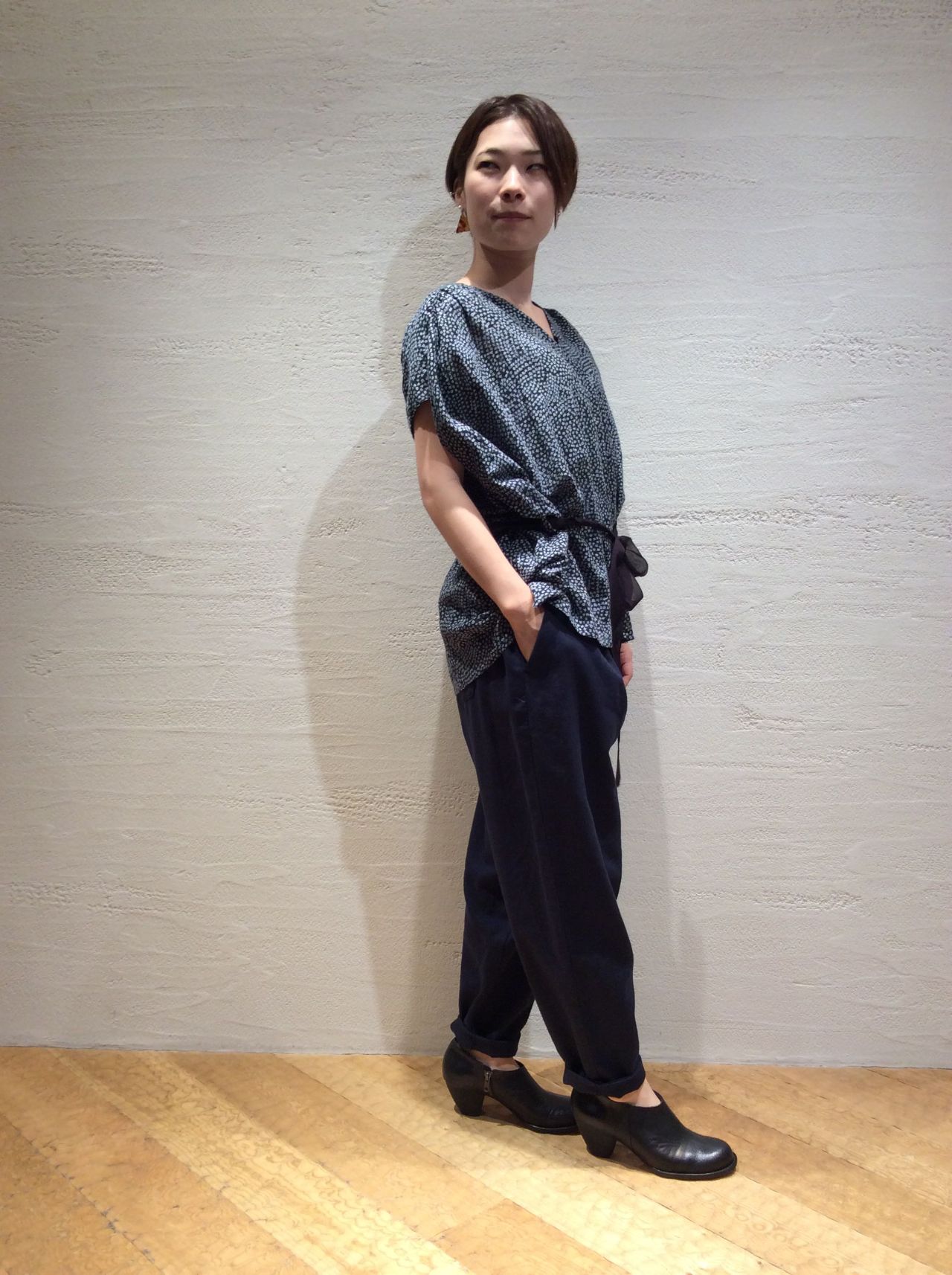 SHIBORIプリントブラウス(着用:ネイビー)