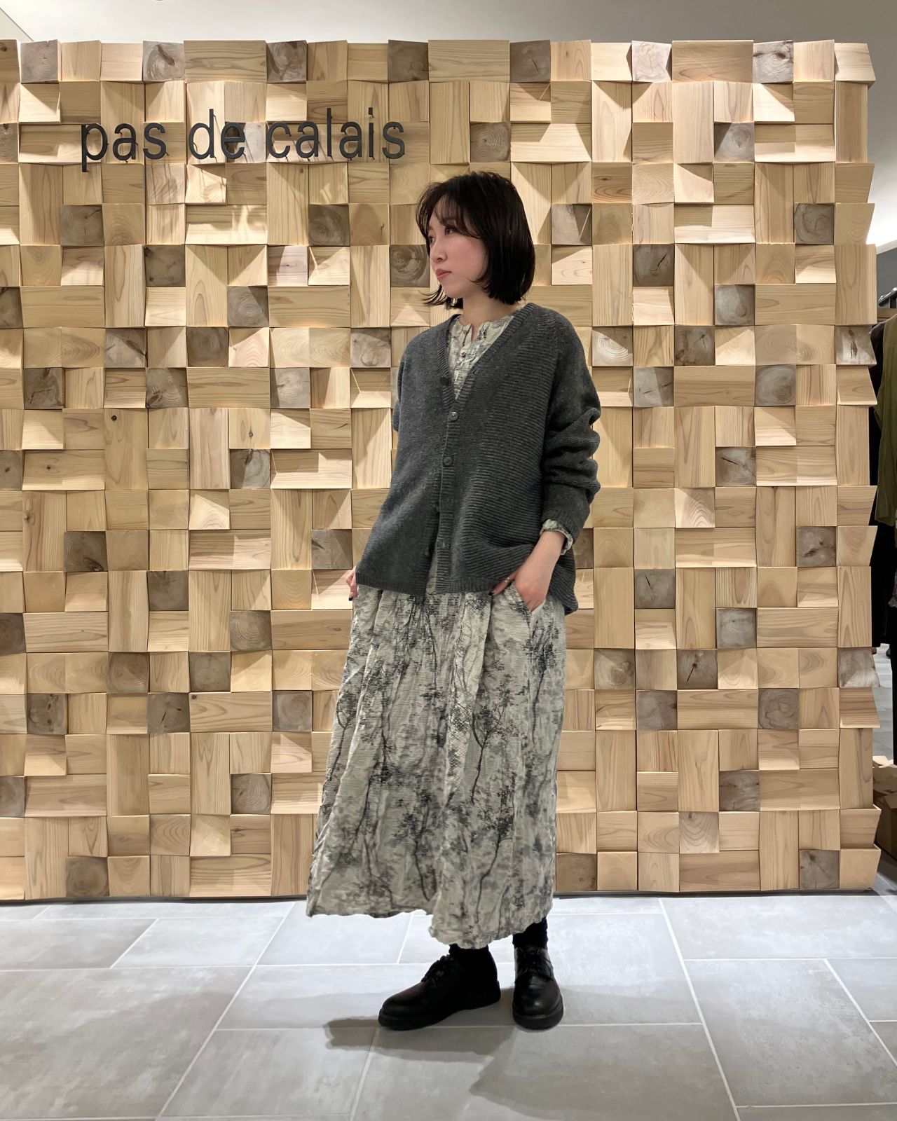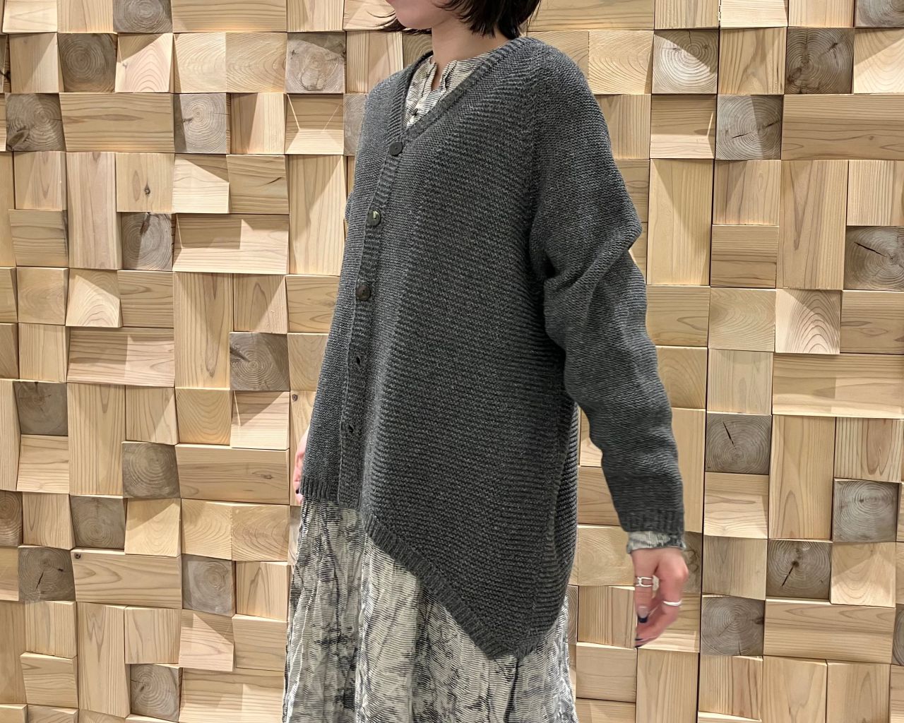 【ウールリネン イレギュラーヘムカーディガン/SPREAD FORESTプリント ワンピース】