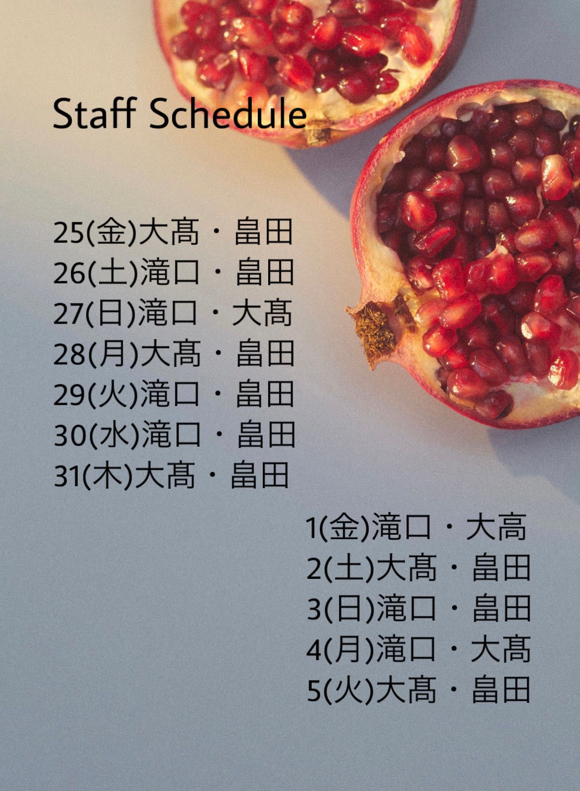 ご希望のスタッフがいる場合は合わせてご指定くださいませ。