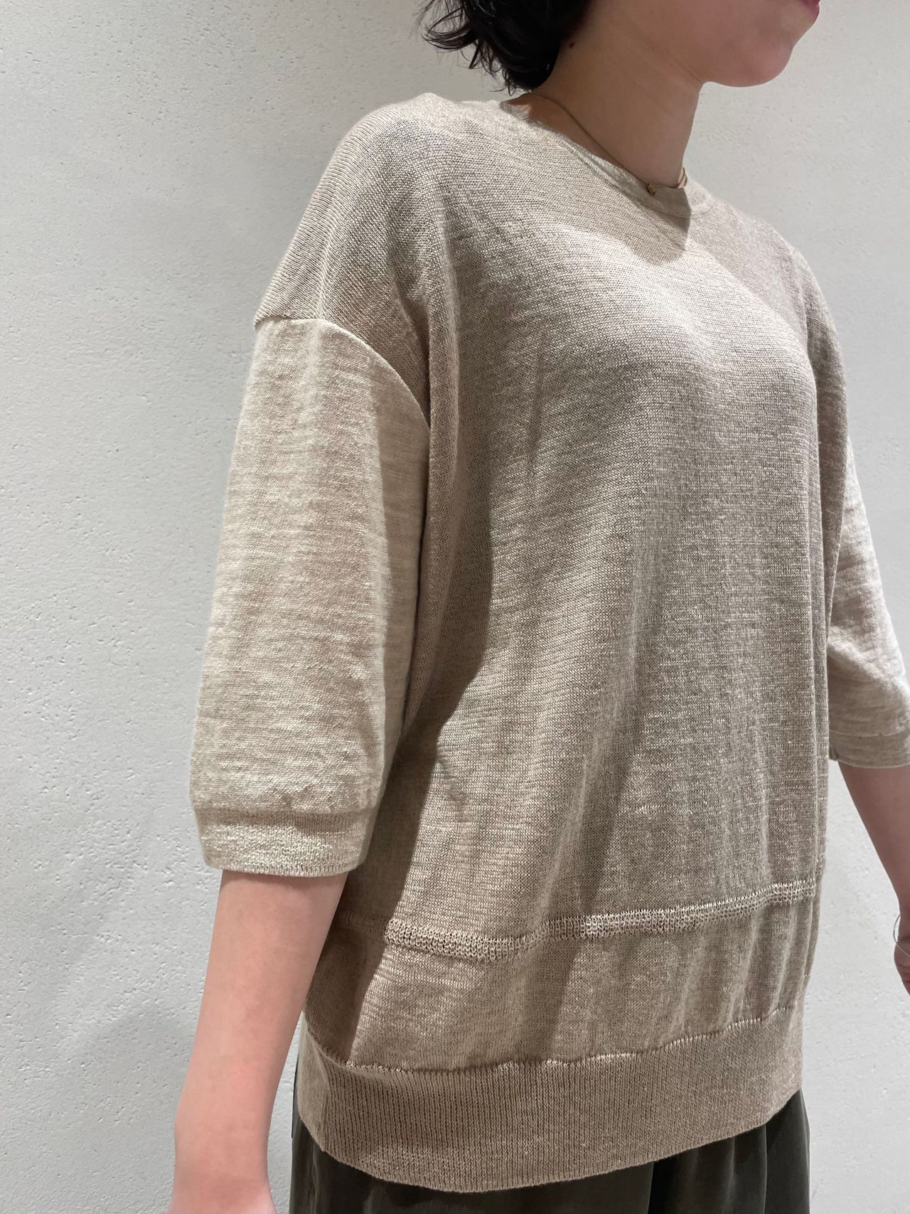 綿、麻、ウールの異素材をミックスさせたコンパクトなニット。