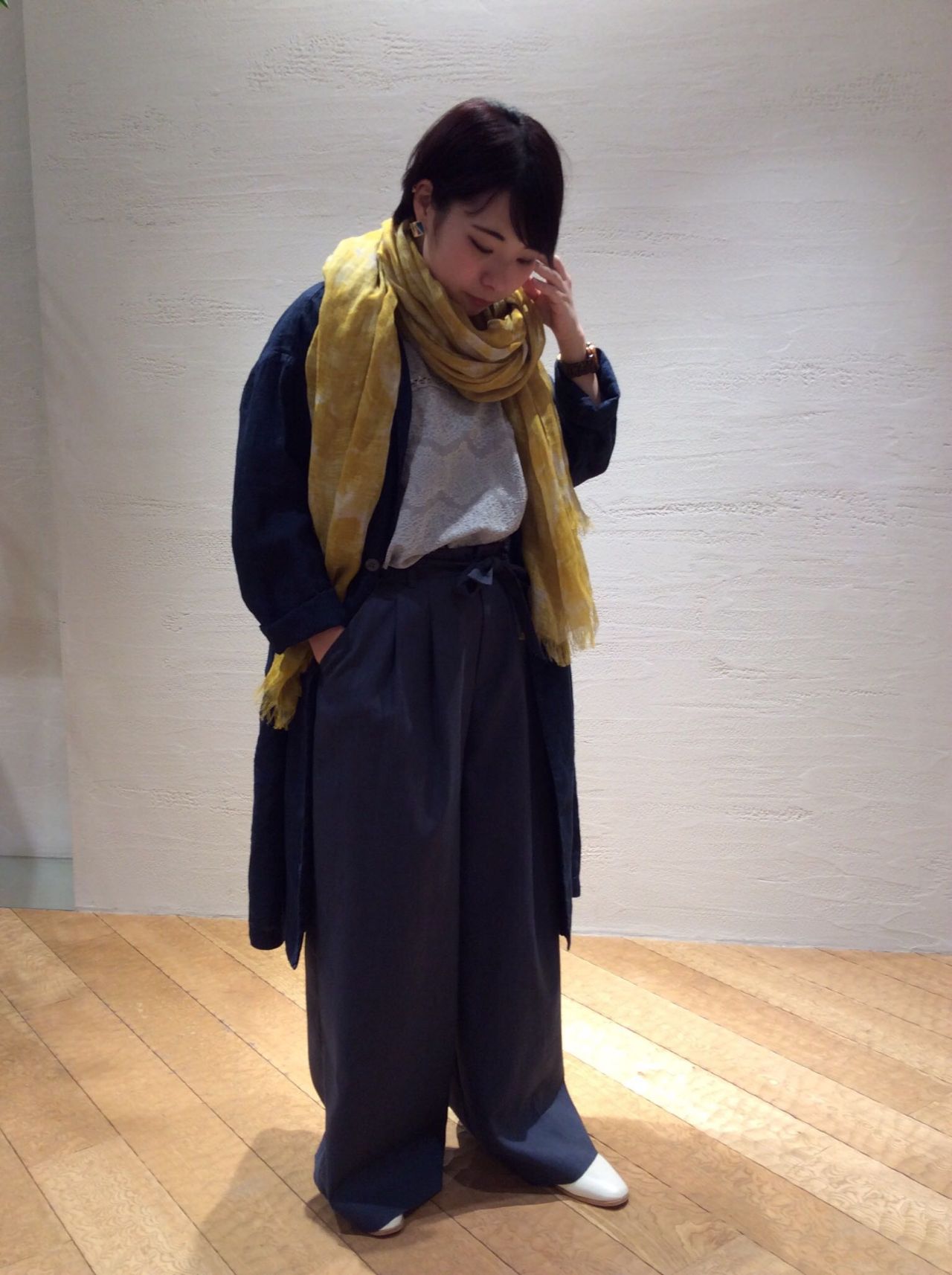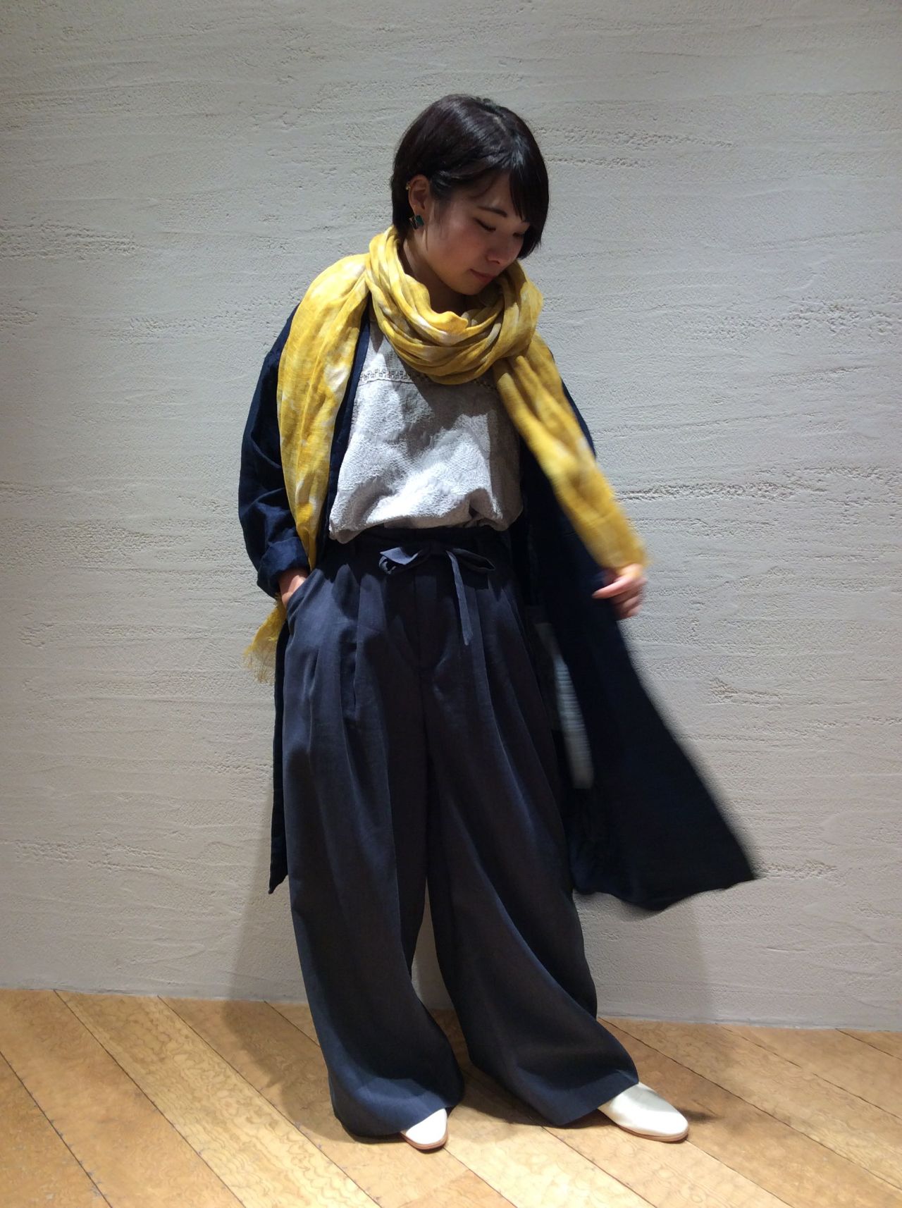 本日は前回のブログで着用した、こちらのリネデランコードストレッチワイドパンツを使用したコーディネートをご紹介致します。