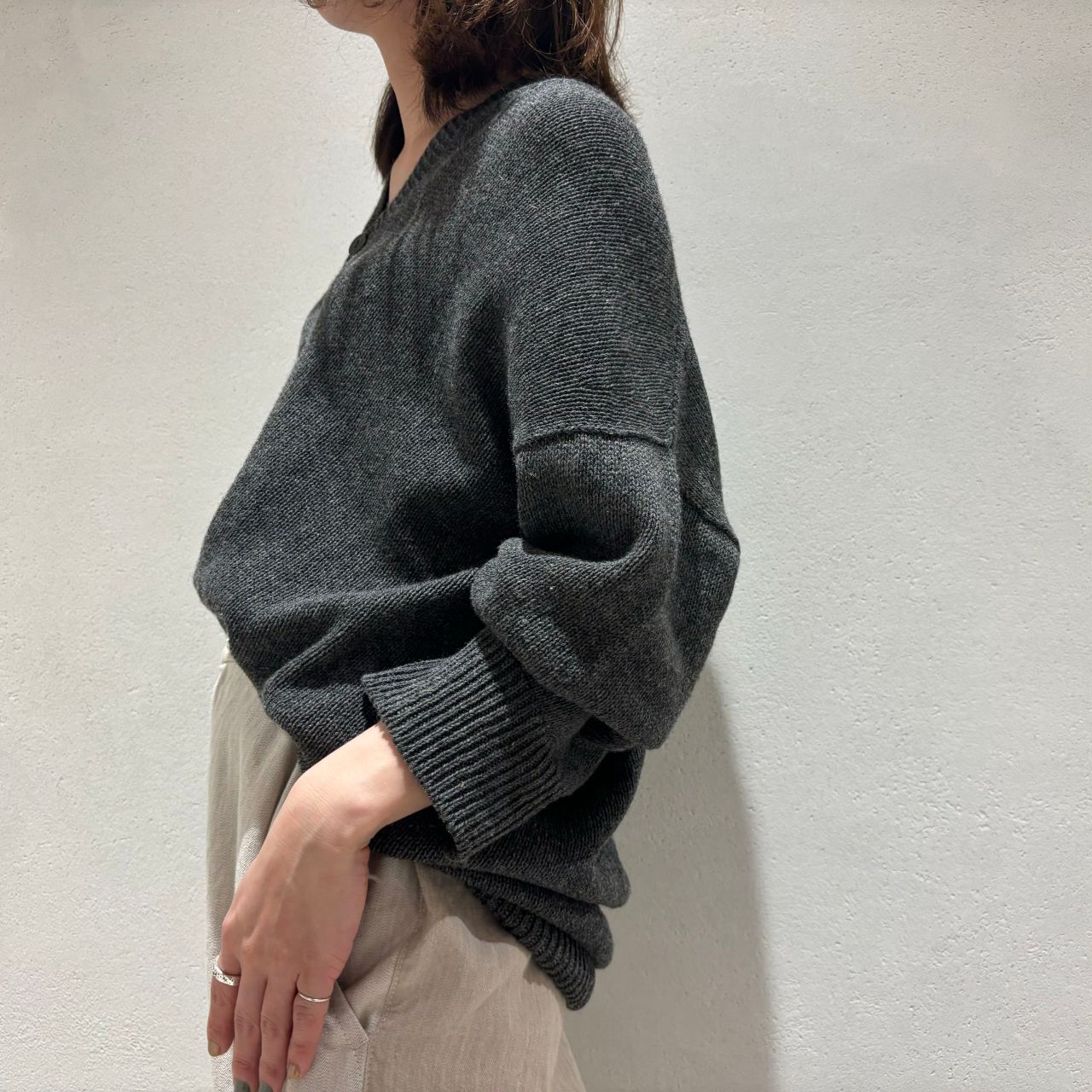 ドルマンスリーブを活かして肩を抜いて着るのもおすすめです。