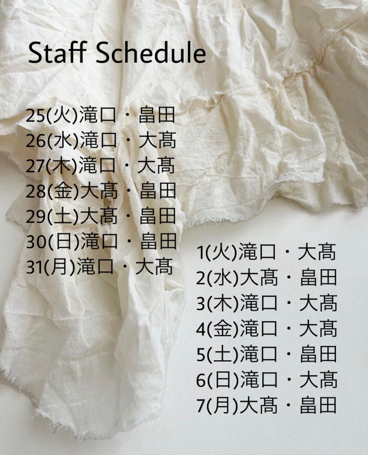 ご希望のスタッフがいる場合は合わせてご指定くださいませ。