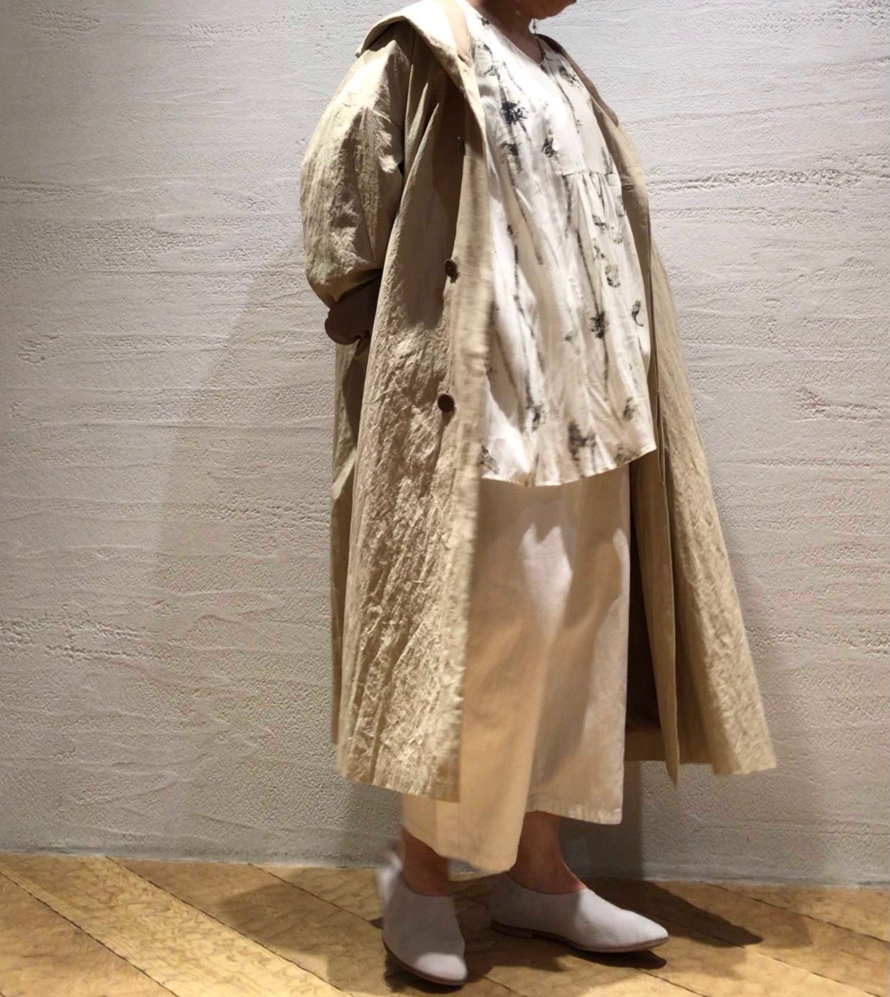 コートのベージュからパンツのアイボリーと全体を淡い色のコーディネートにまとめてみました。
