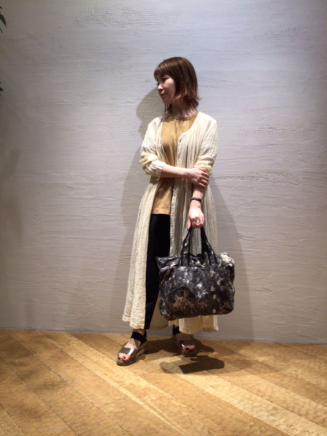 まだ肌寒い時間帯もある今時期には、麻素材のワンピースを羽織って体温調節を兼ねたイメージチェンジもオススメです。
