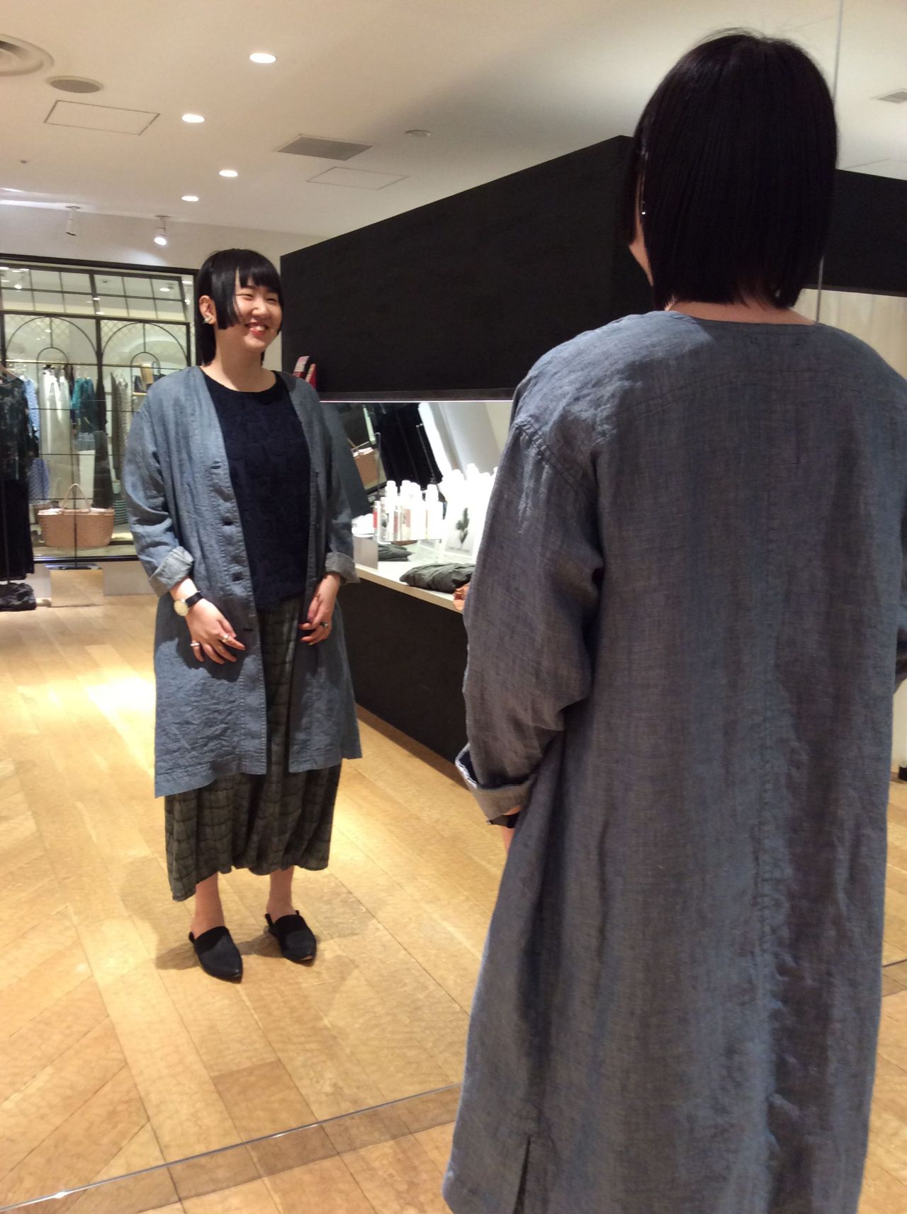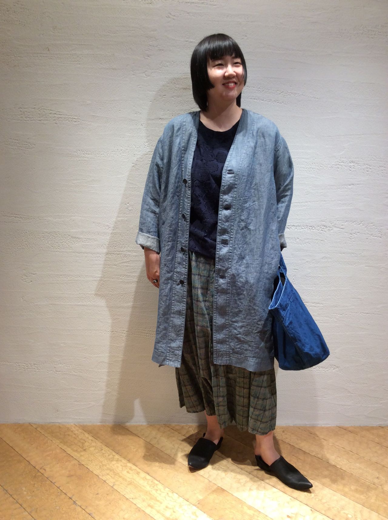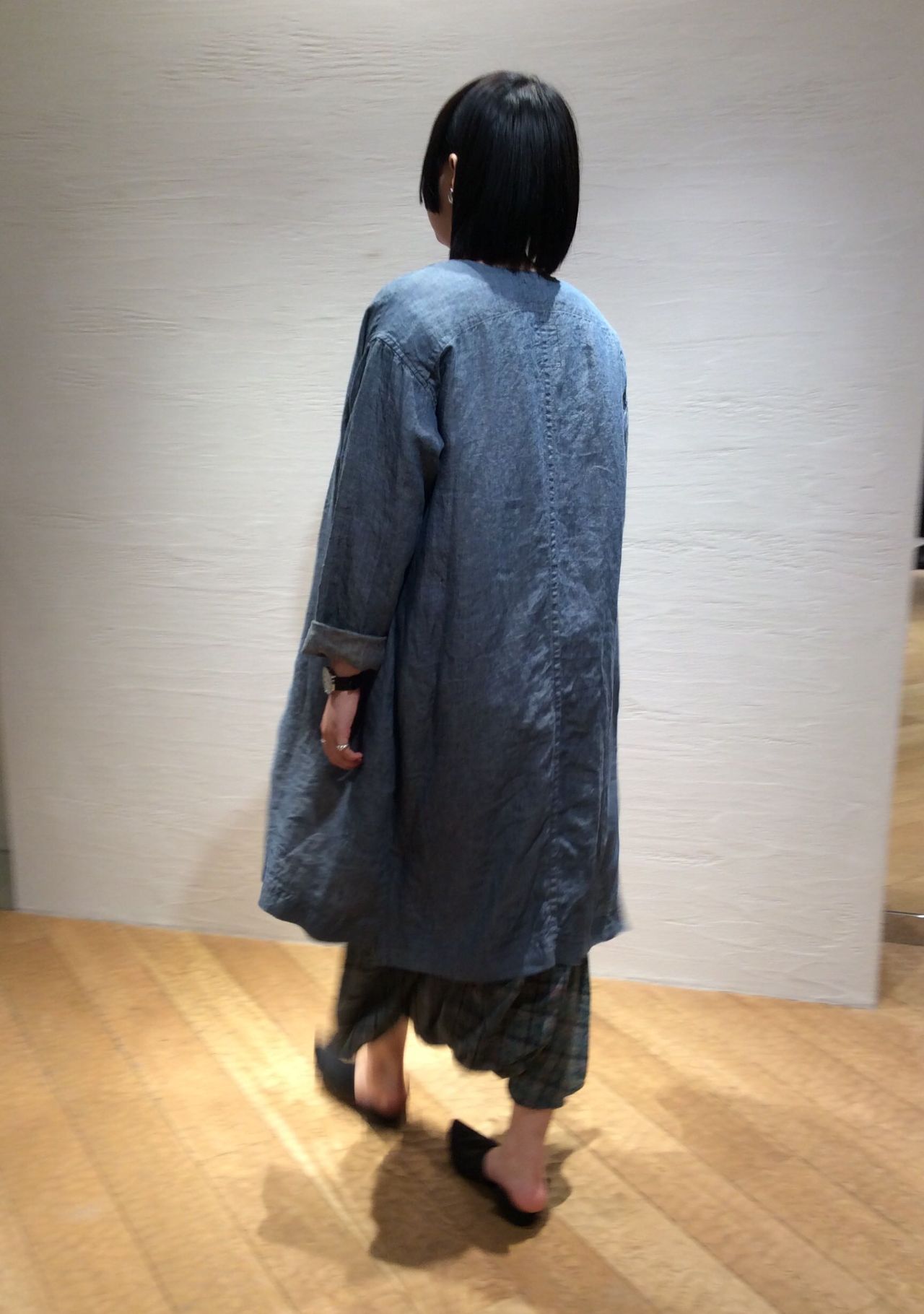 リネン綾シャンブレーコート(着用:ライトブルー)