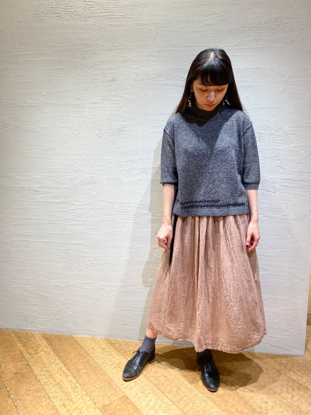 リネン先染ボイルワッシャースカート(着用:ピンク size.36)