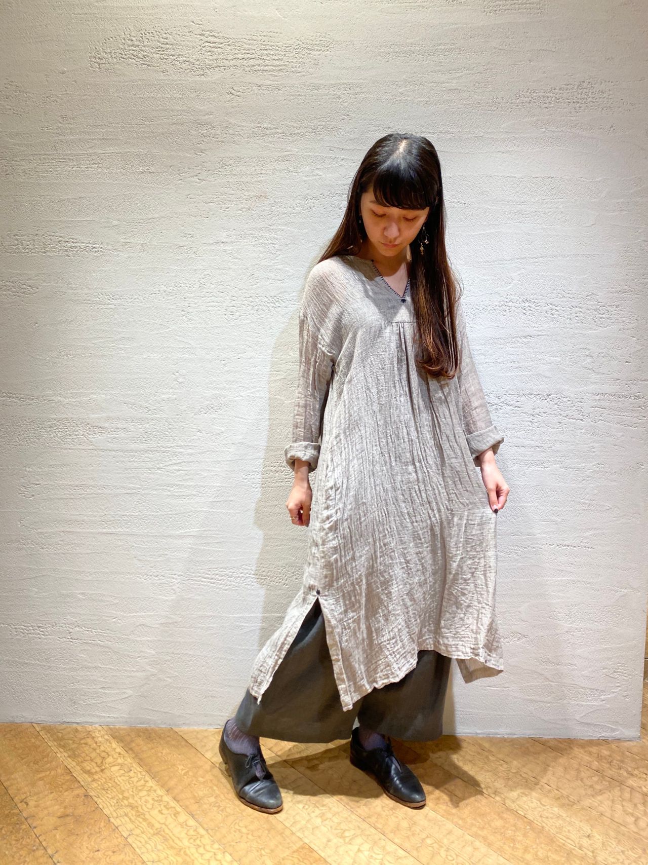 リネン先染ボイルワッシャーワンピース(着用:ベージュ size36)