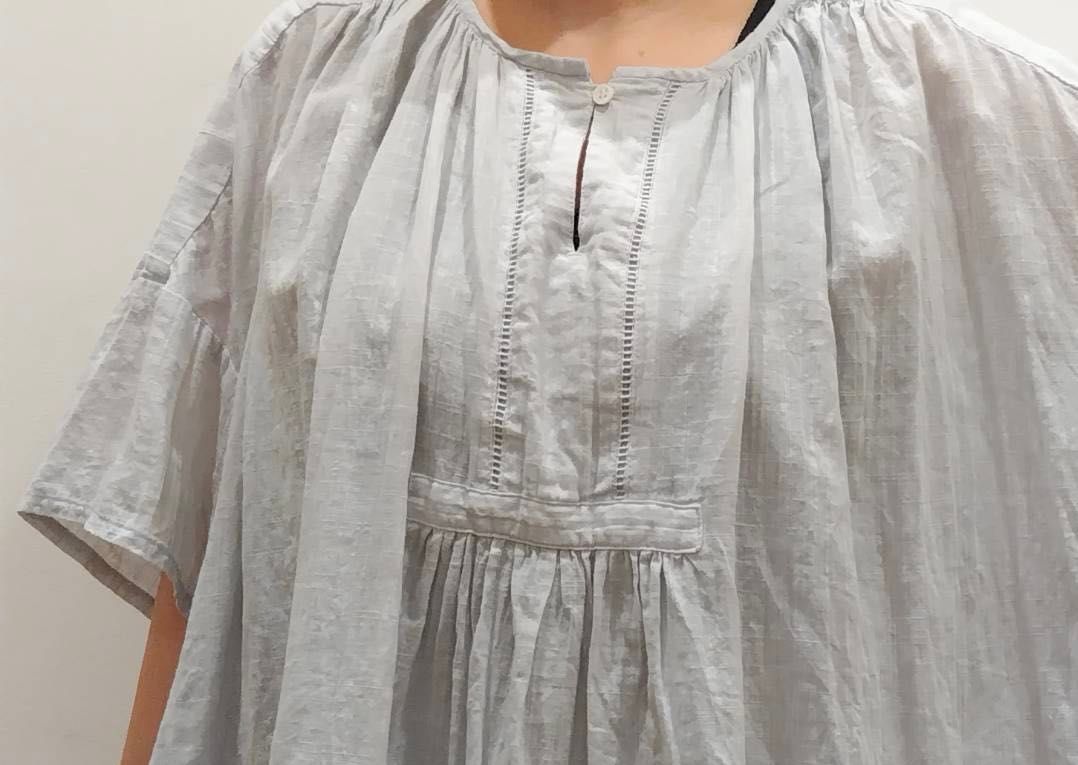首元からもギャザーが入り、ゆったりとリラックス感のある着心地です。