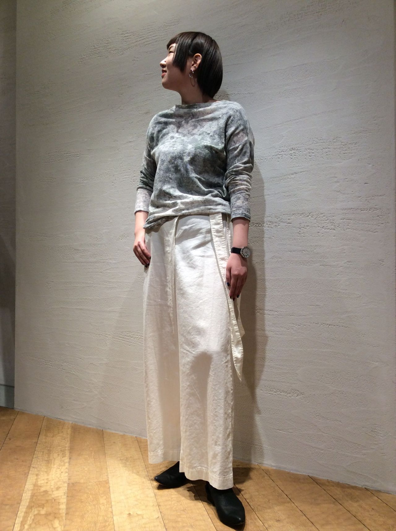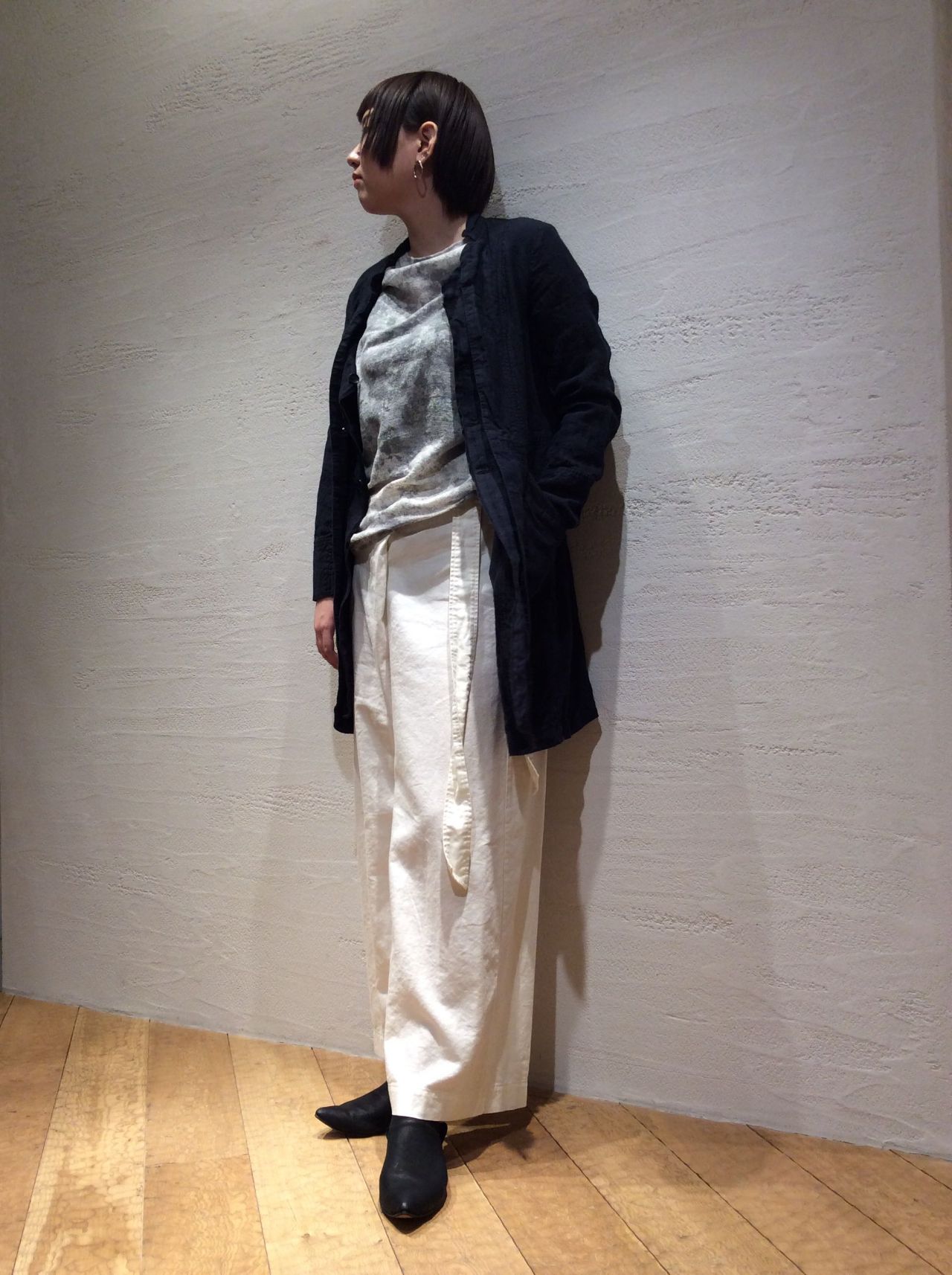 落ち感あるシルエットが綺麗なラップパンツになります。テンセルの滑らかな落ち感と綿麻で清涼感を表現しております