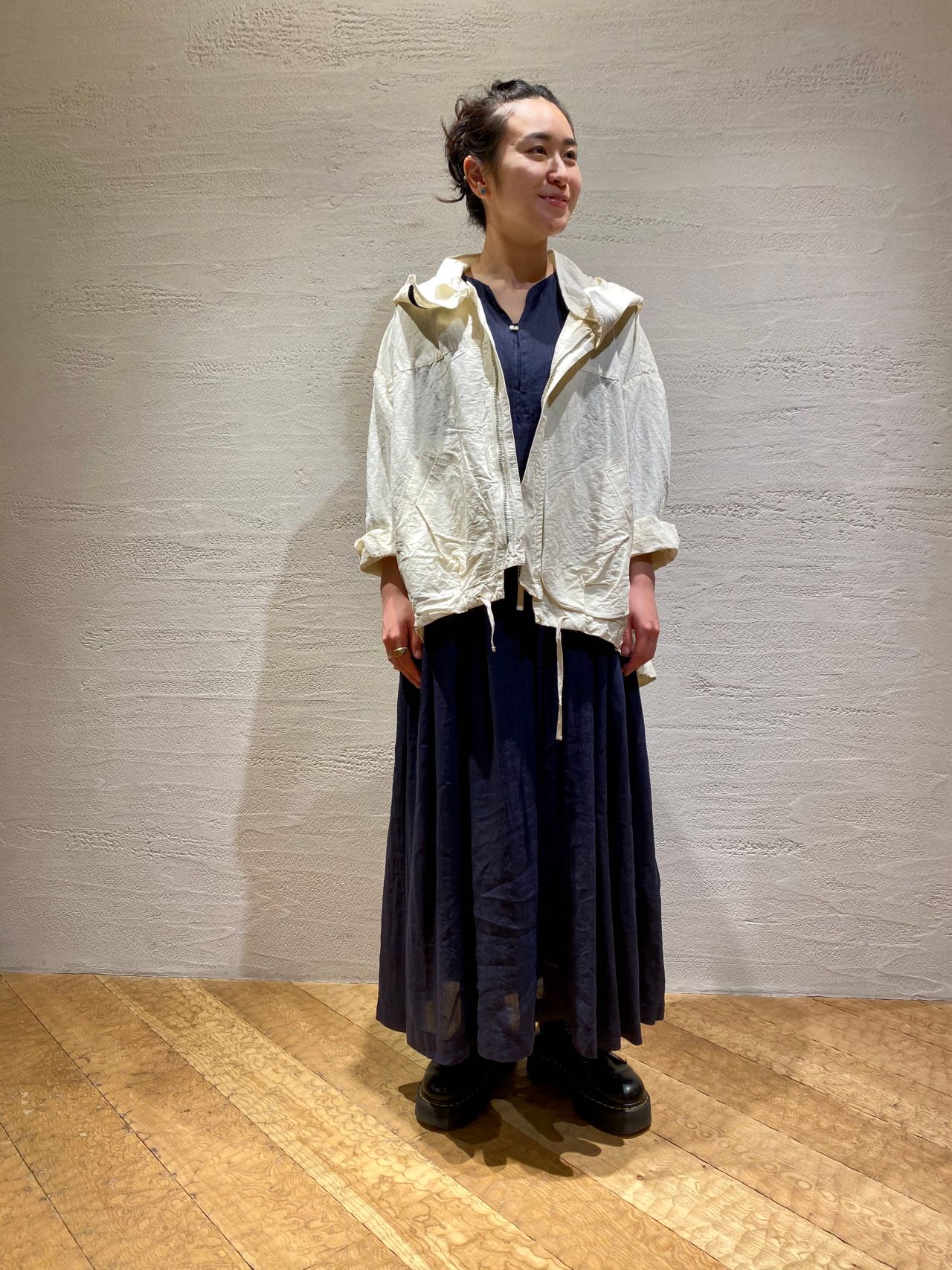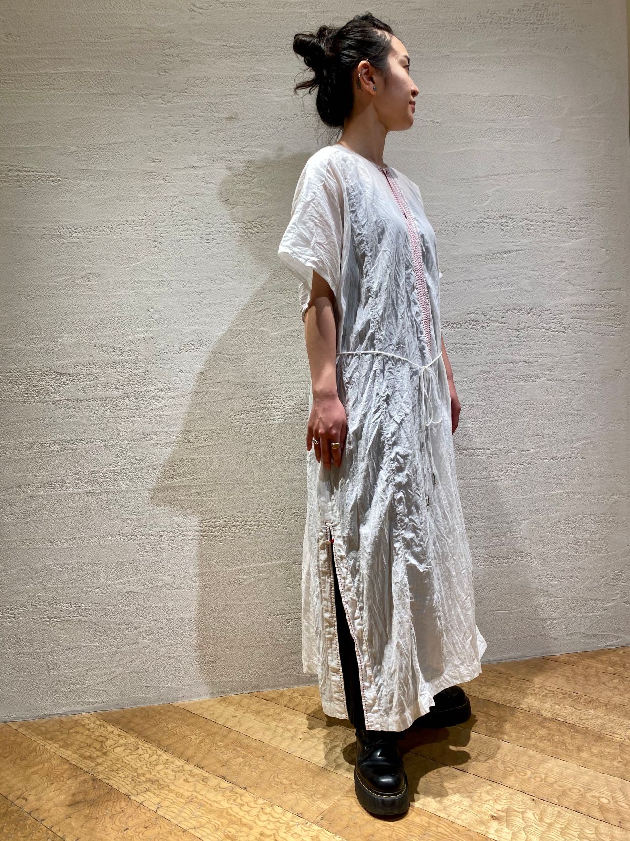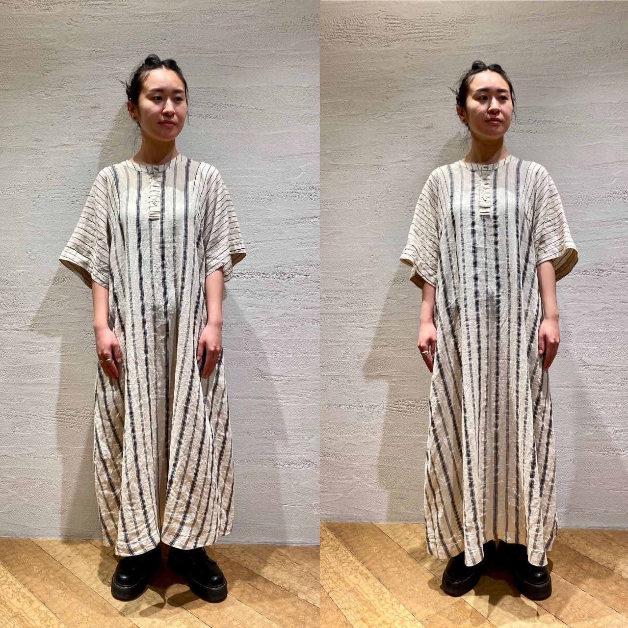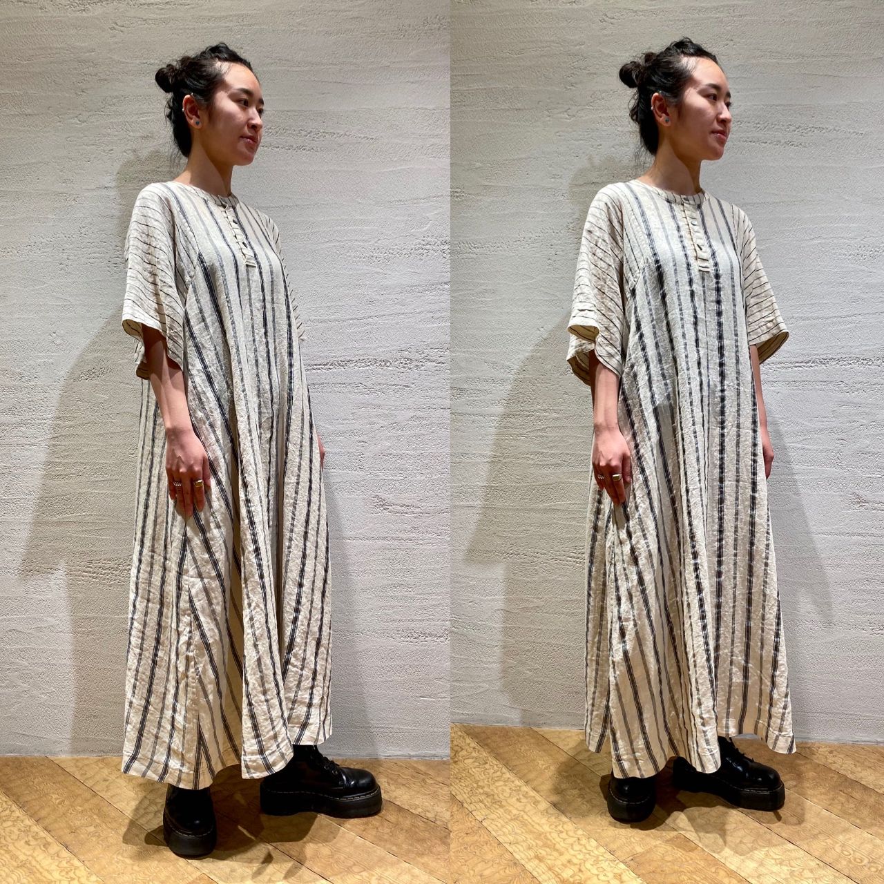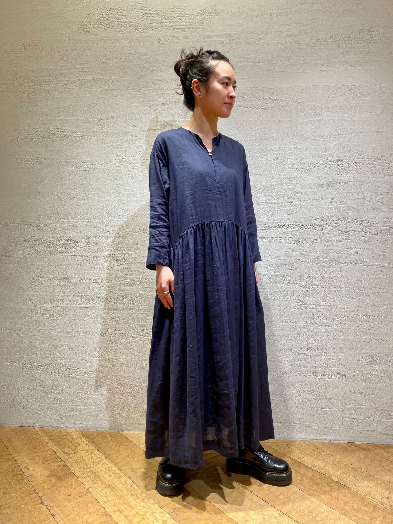 リネン100%の素材は体に密着することなく、これからの時期に涼しく着ていただけるのが嬉しいです。