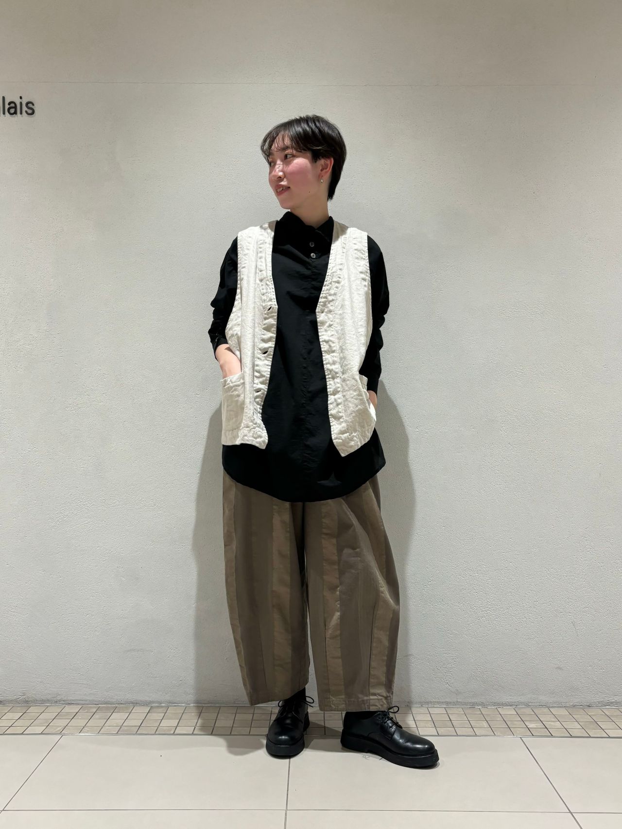 ワイドパンツと合わせてシックなコーディネートもおすすめです。