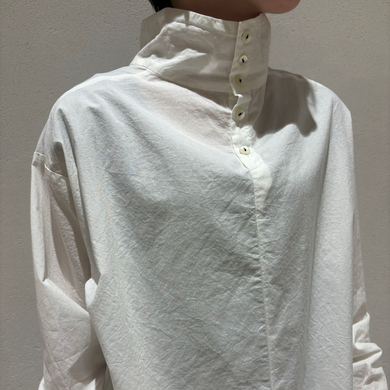 前後逆に着ると、ボタン付きのスタンドカラー。