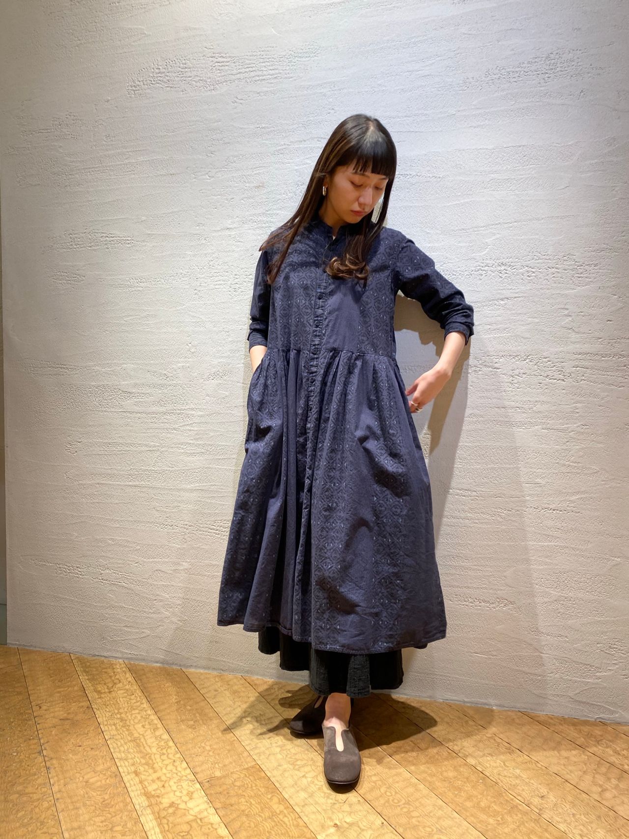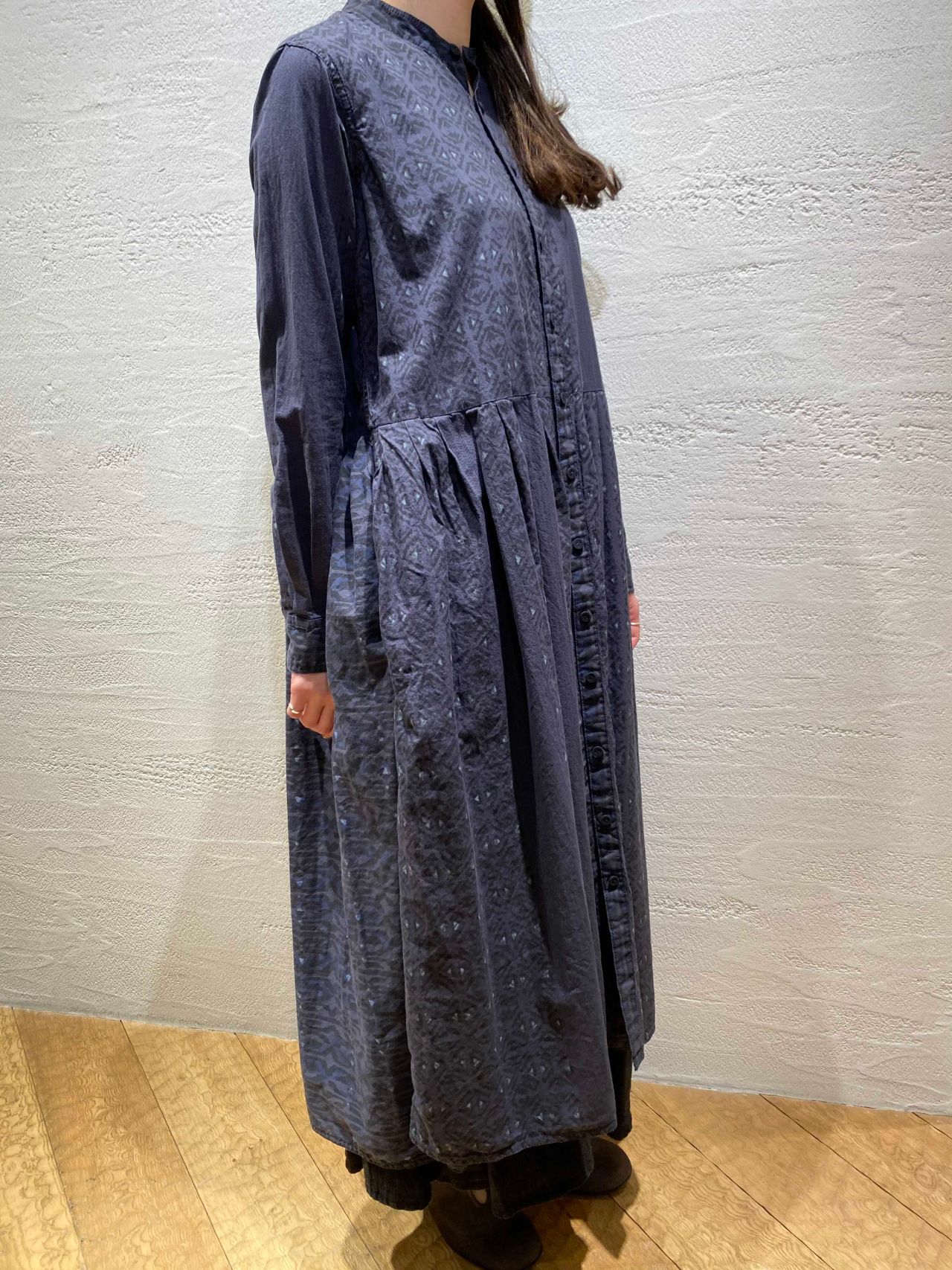 本日は、先日ご紹介したスカートと同じブロックプリントシリーズのワンピースをご紹介致します。