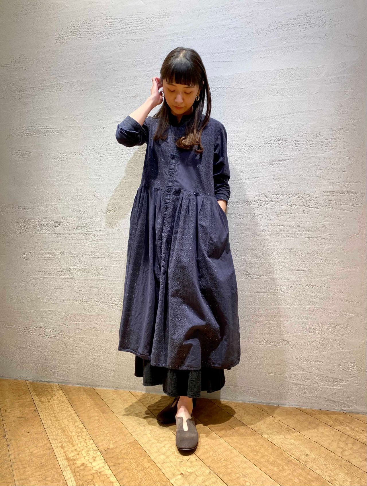 ブロックプリントワンピース(着用:ネイビー)