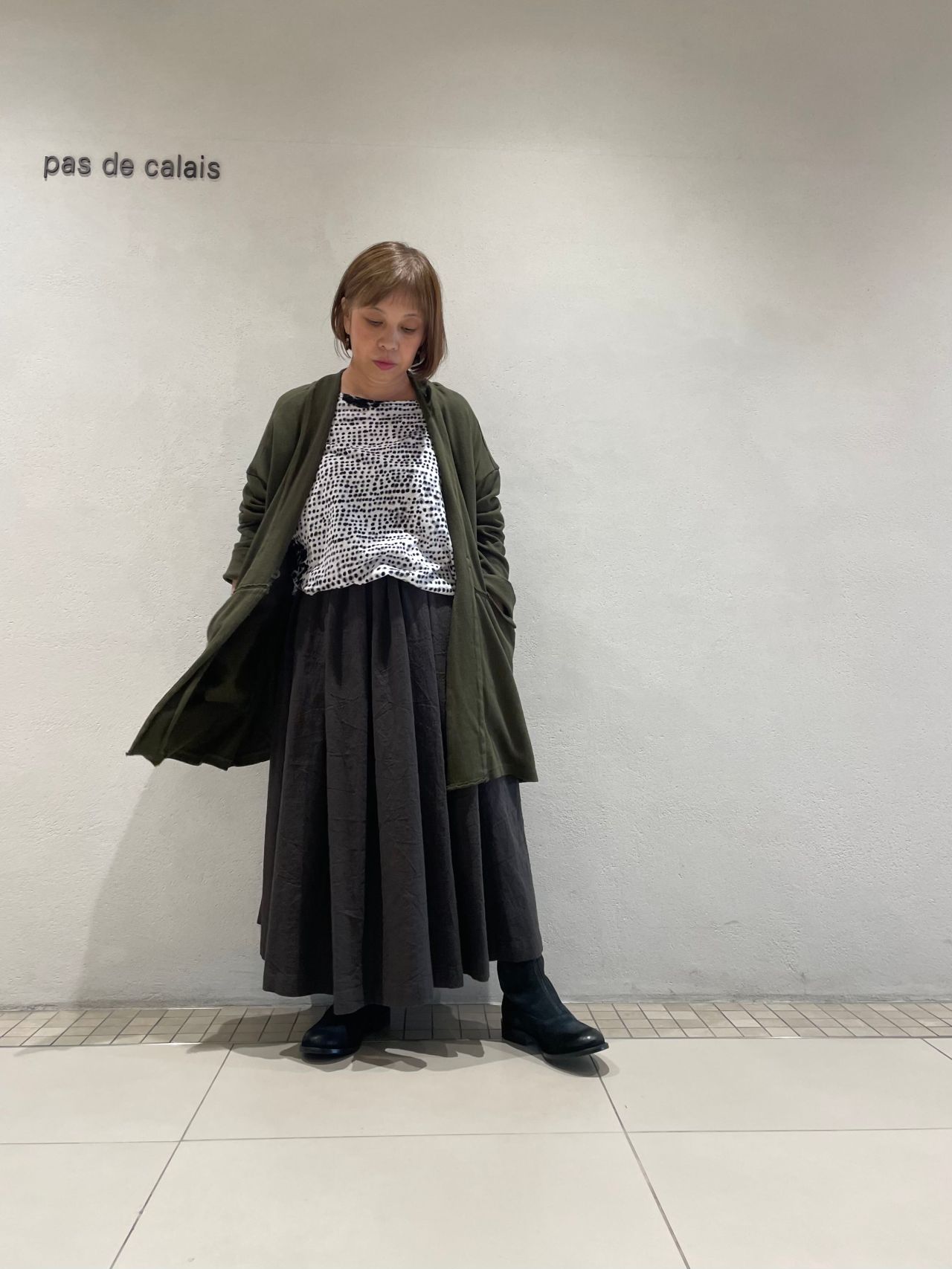 パンツと合わせてメンズライクに。スカートと合わせ、Aラインのシルエットを強調させて。