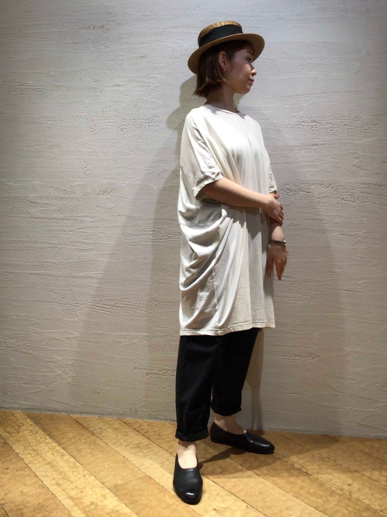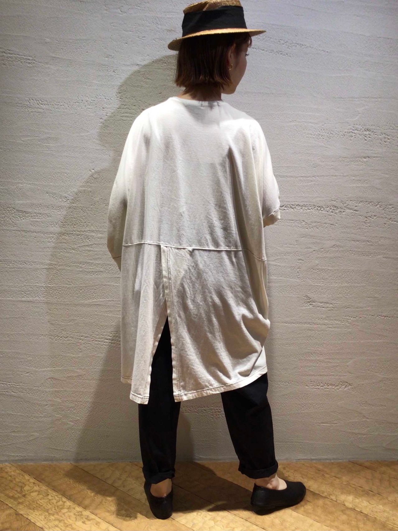 ワイドチュニックなシルエットが細身のパンツと相性バツグン。