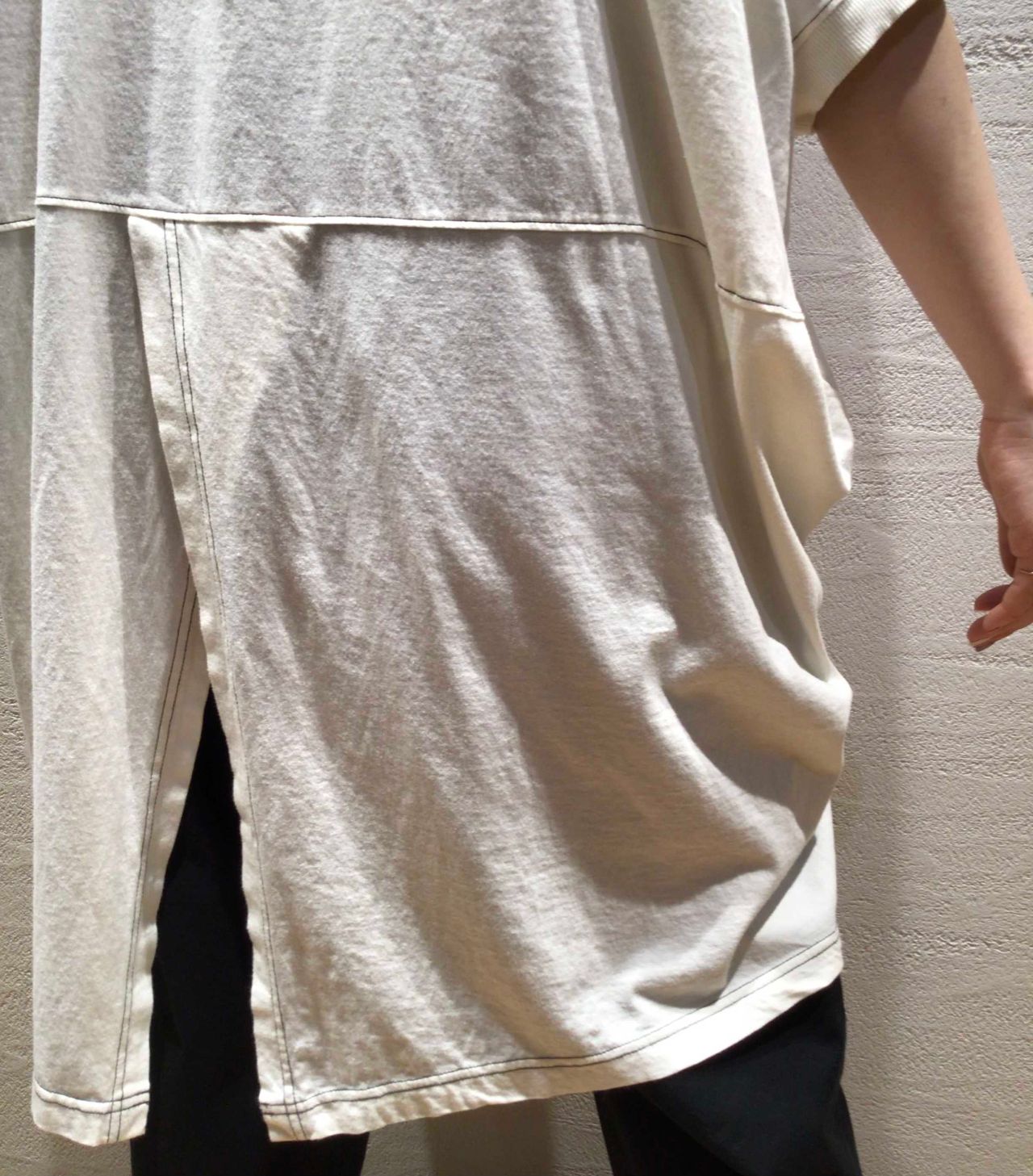 後ろにはスリットが入り、配色違いのステッチもポイントです。