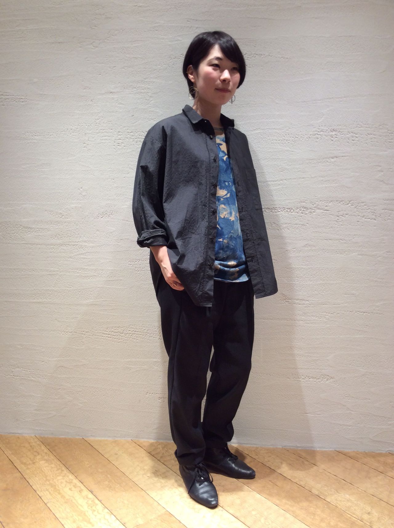 タイプライター焙煎風ドライブラウス 〈着用:チャコールグレー〉