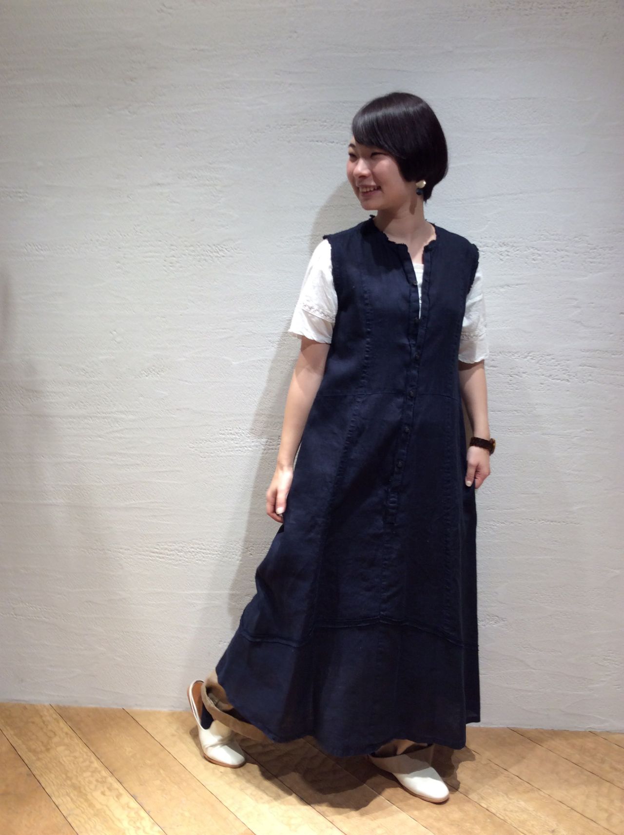 リネンワンピース (着用:ネイビー)