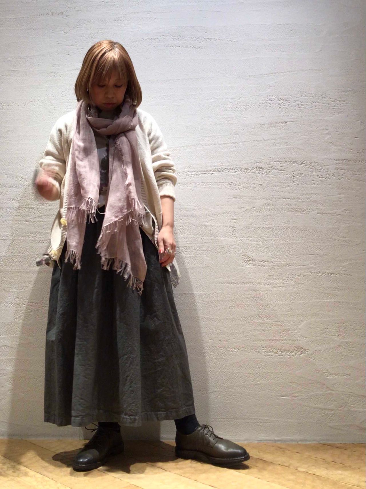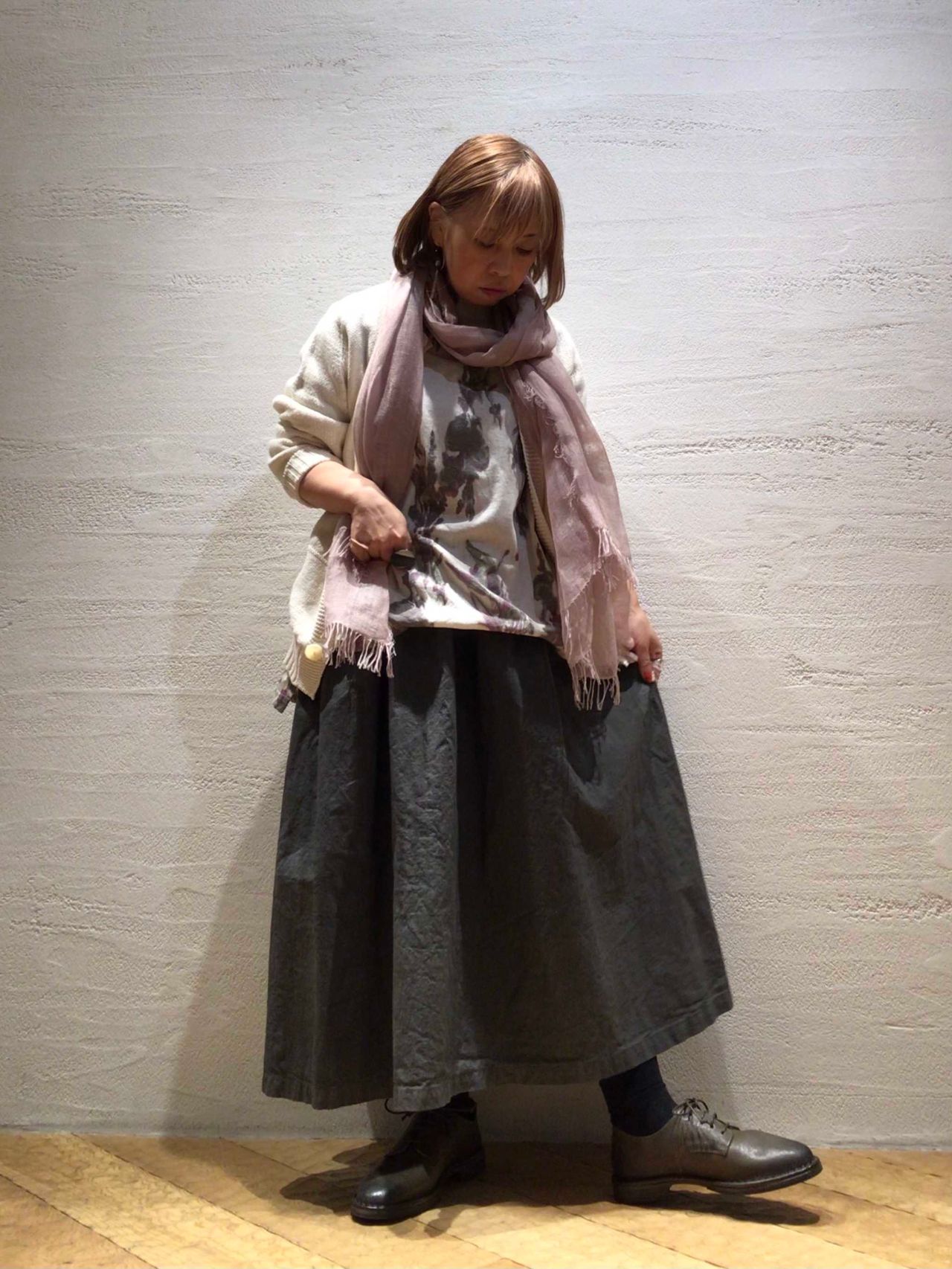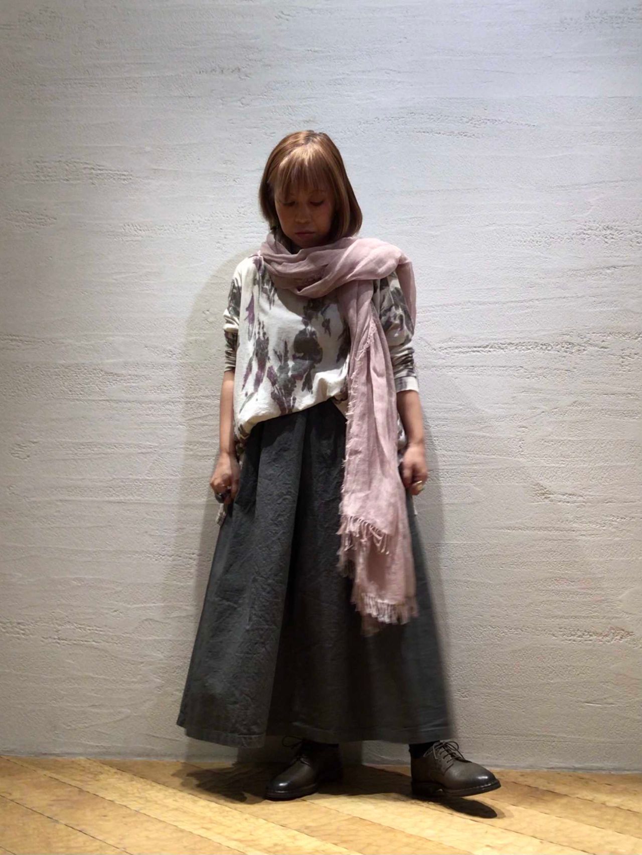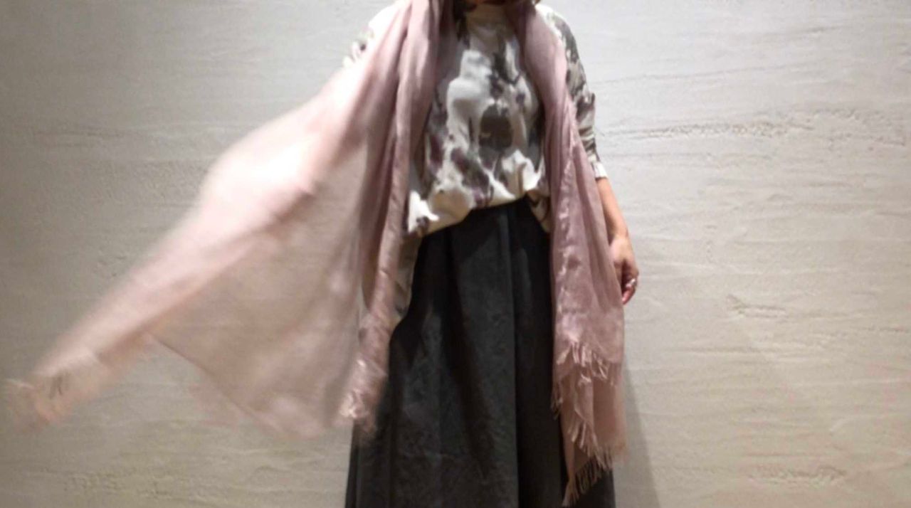本日ご紹介するのは桜色のストールをポイントにしたこちらのLOOKです。