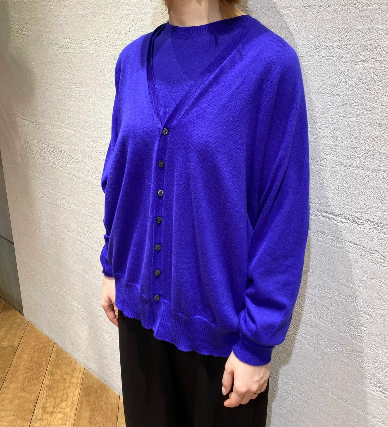 ハイゲージカシミヤカーディガン(着用: ブルー)