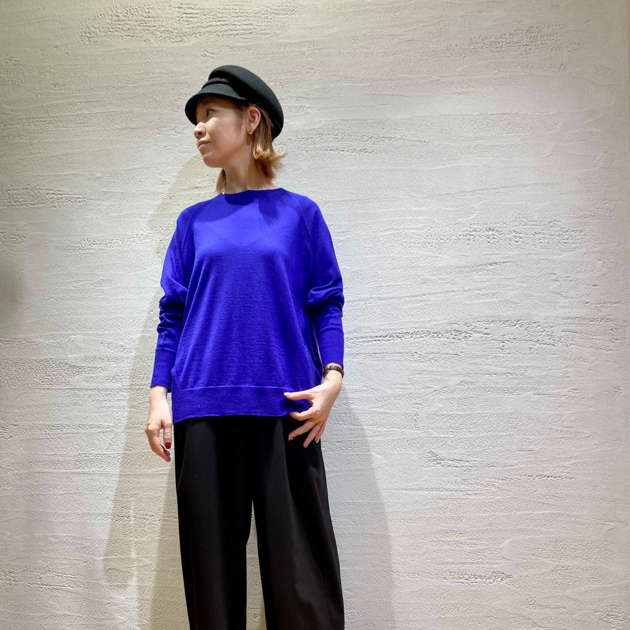 ハイゲージカシミヤプルオーバー(着用: ブルー)