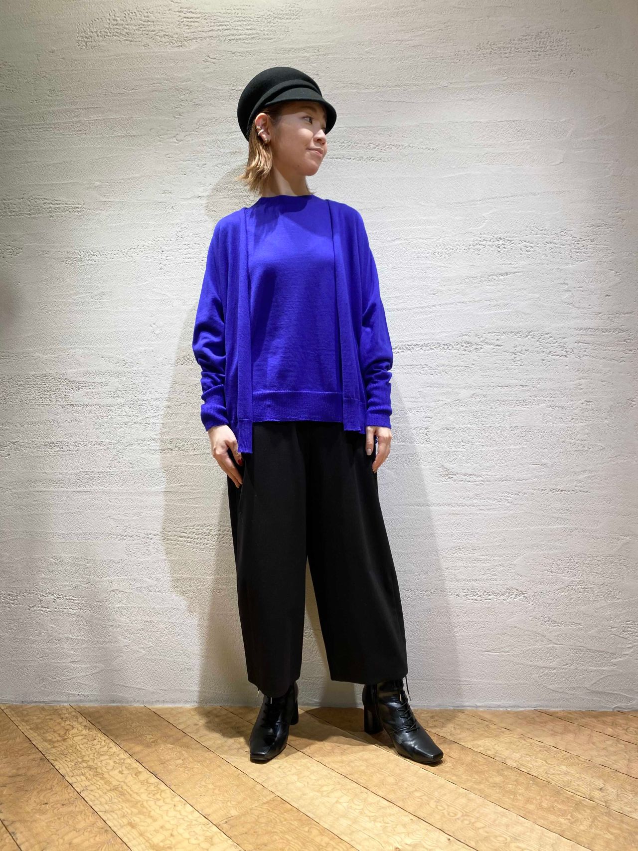 本日は色鮮やかなブルーのニットアンサンブルをご紹介致します。