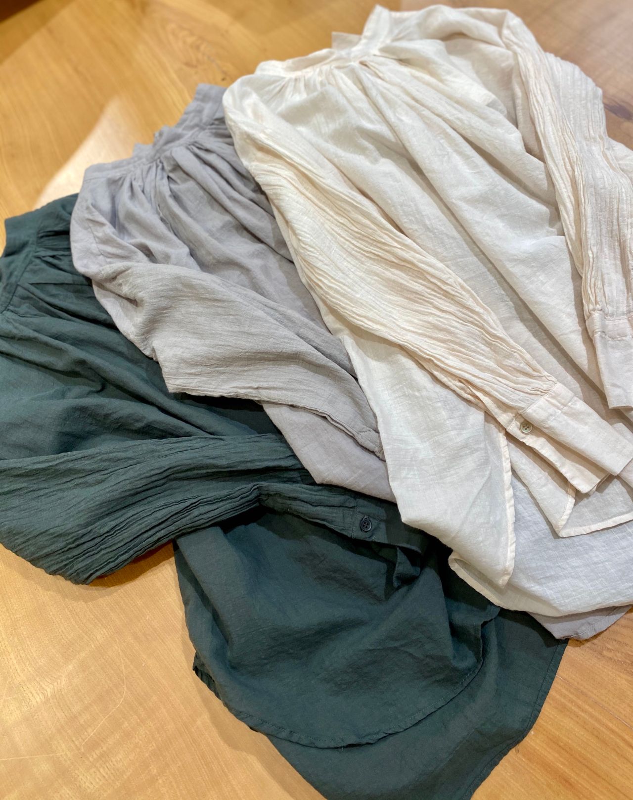 また、ブラウスは前後ろどちらも着ていただけるので色々な組み合わせで楽しんで頂けます。