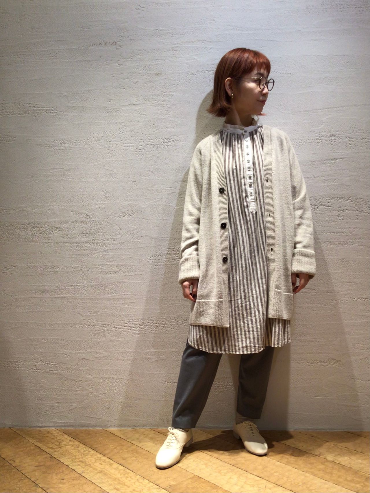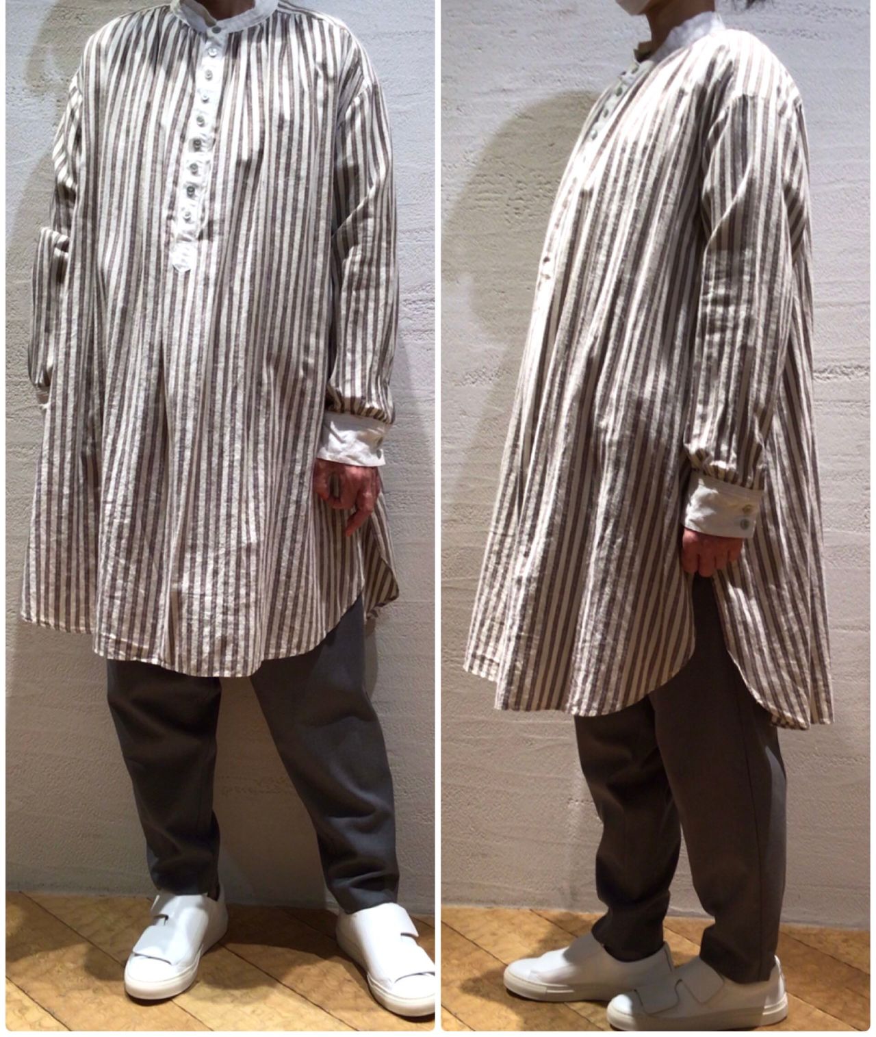 体型に関係なくそれぞれの丈感で、今から春までお召し頂けるロングブラウスですよ。