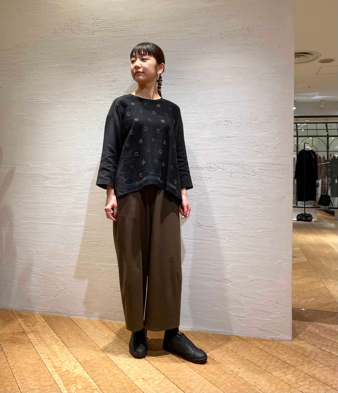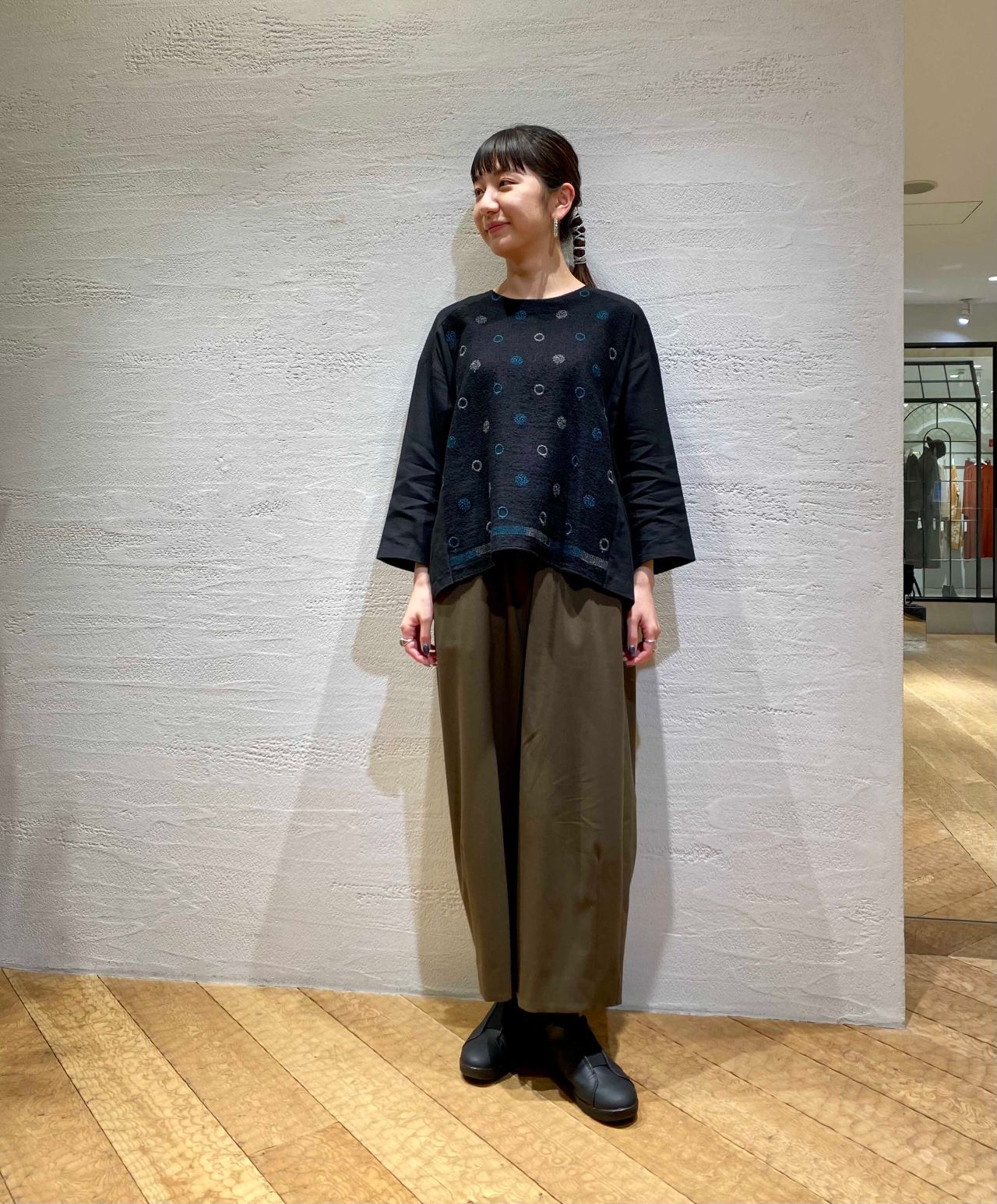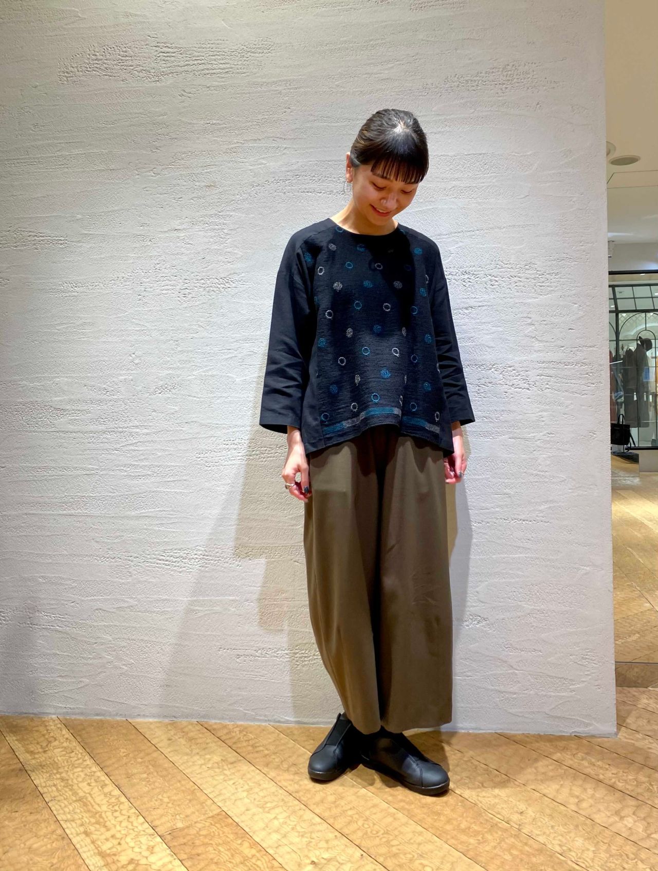 ブラウスは着用のブラックと刺繍の色が違いますので、店頭で着比べてみてくださいね。