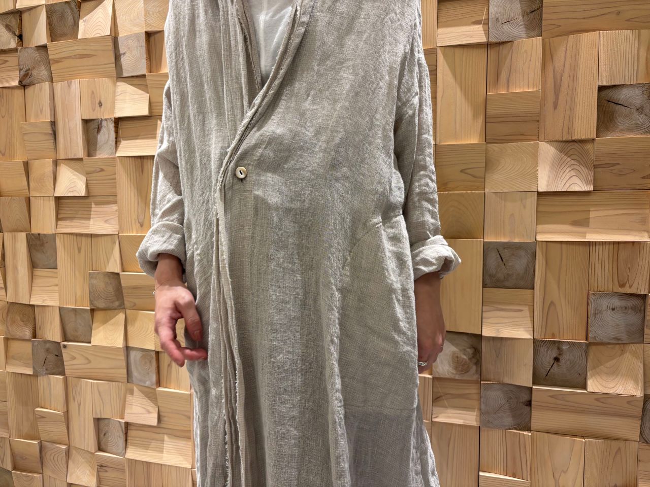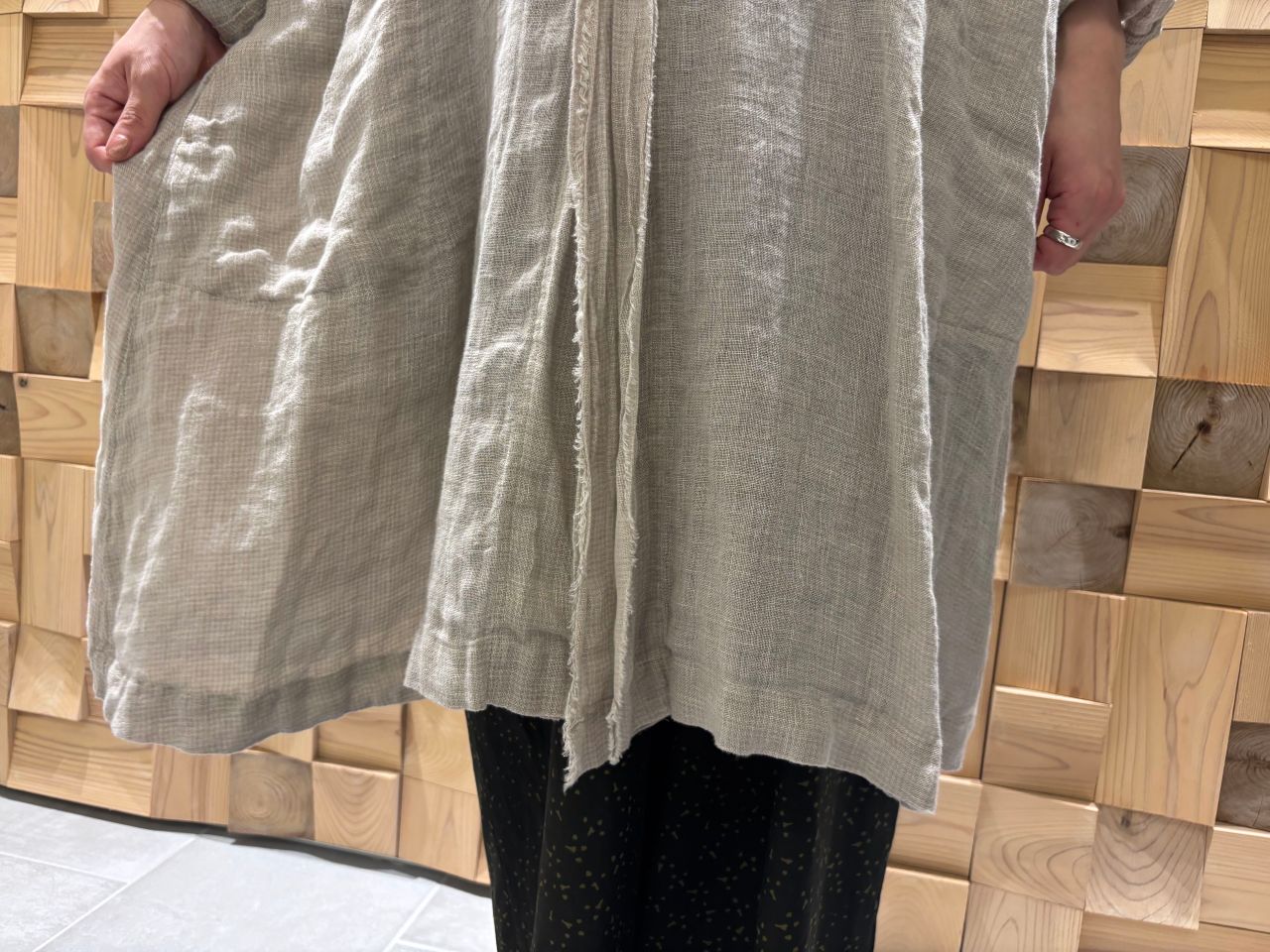 ノルマンディリネンの空気を含んだようなエアリー感を活かしたパドカレらしい羽織です。