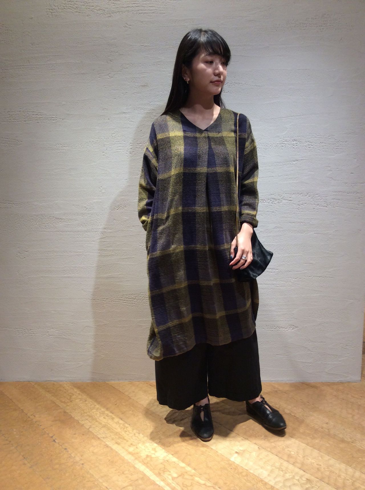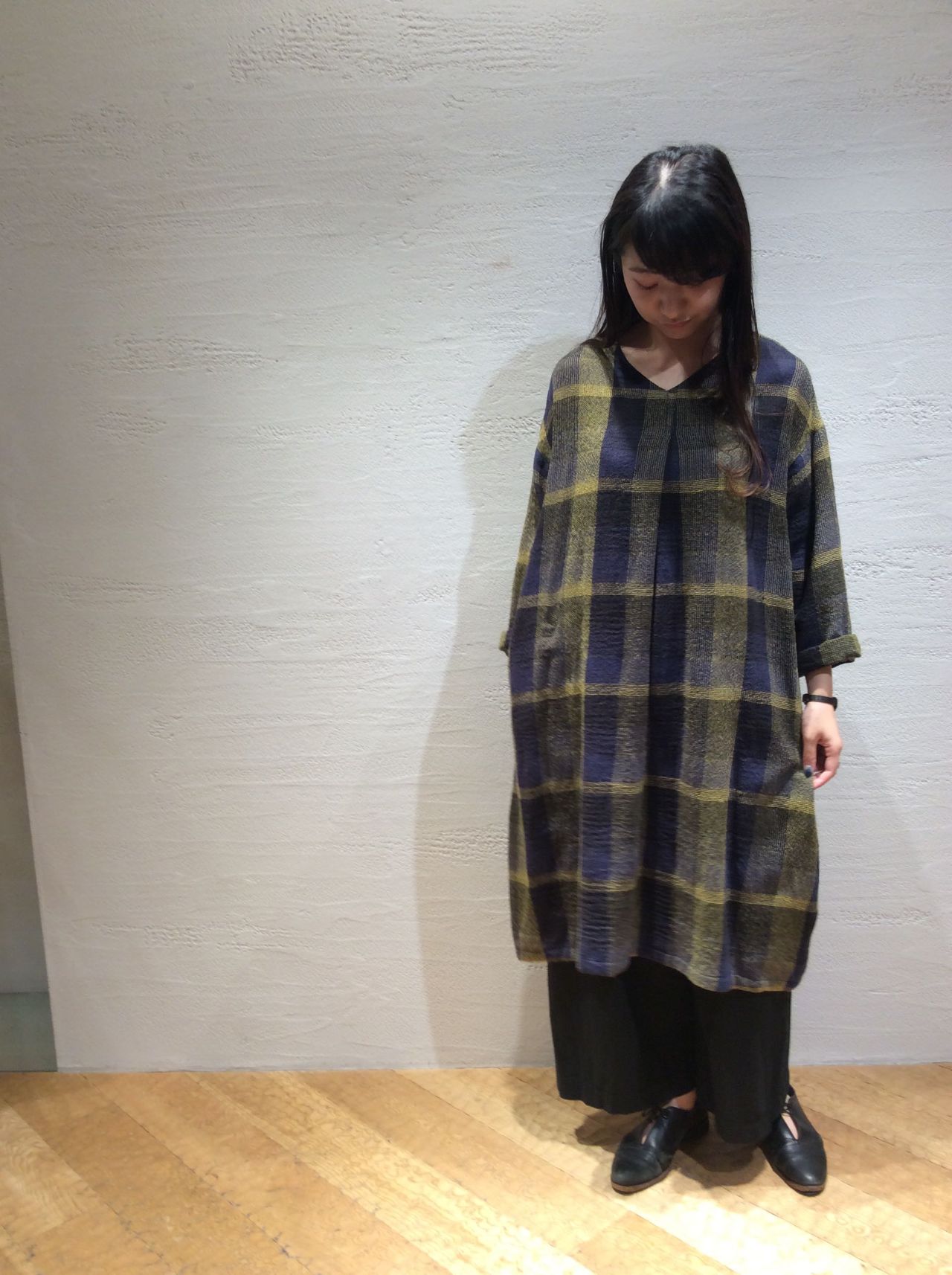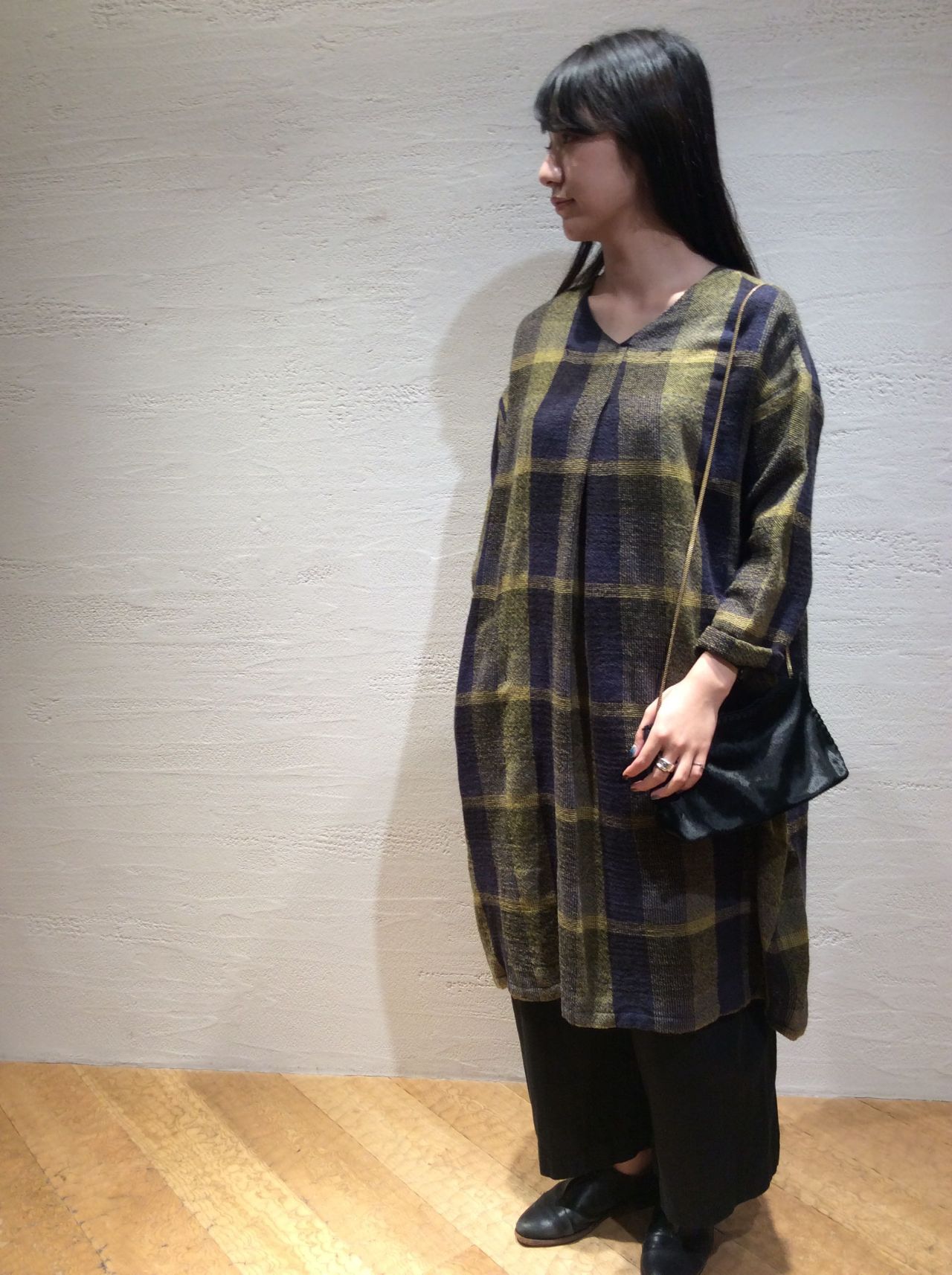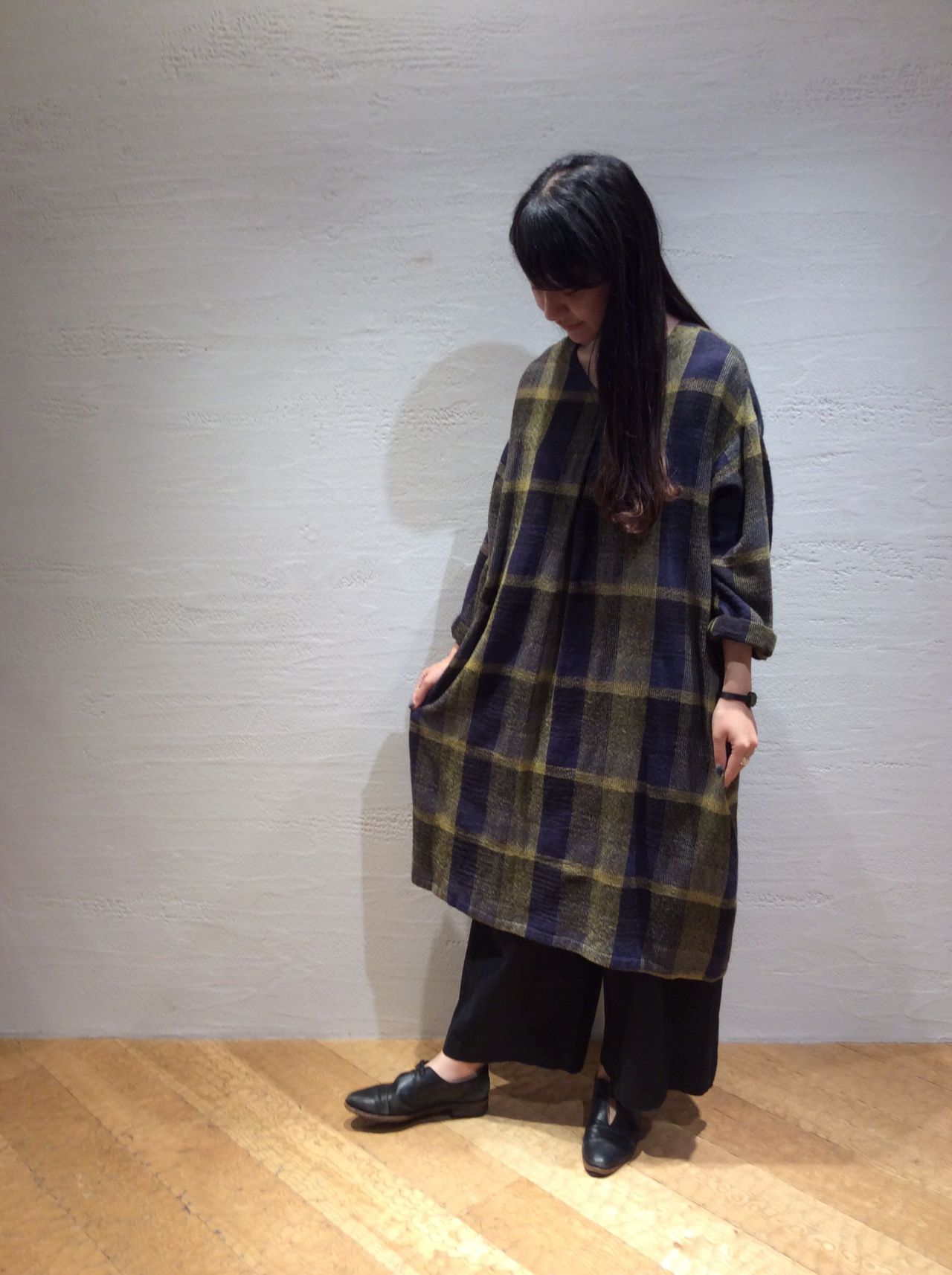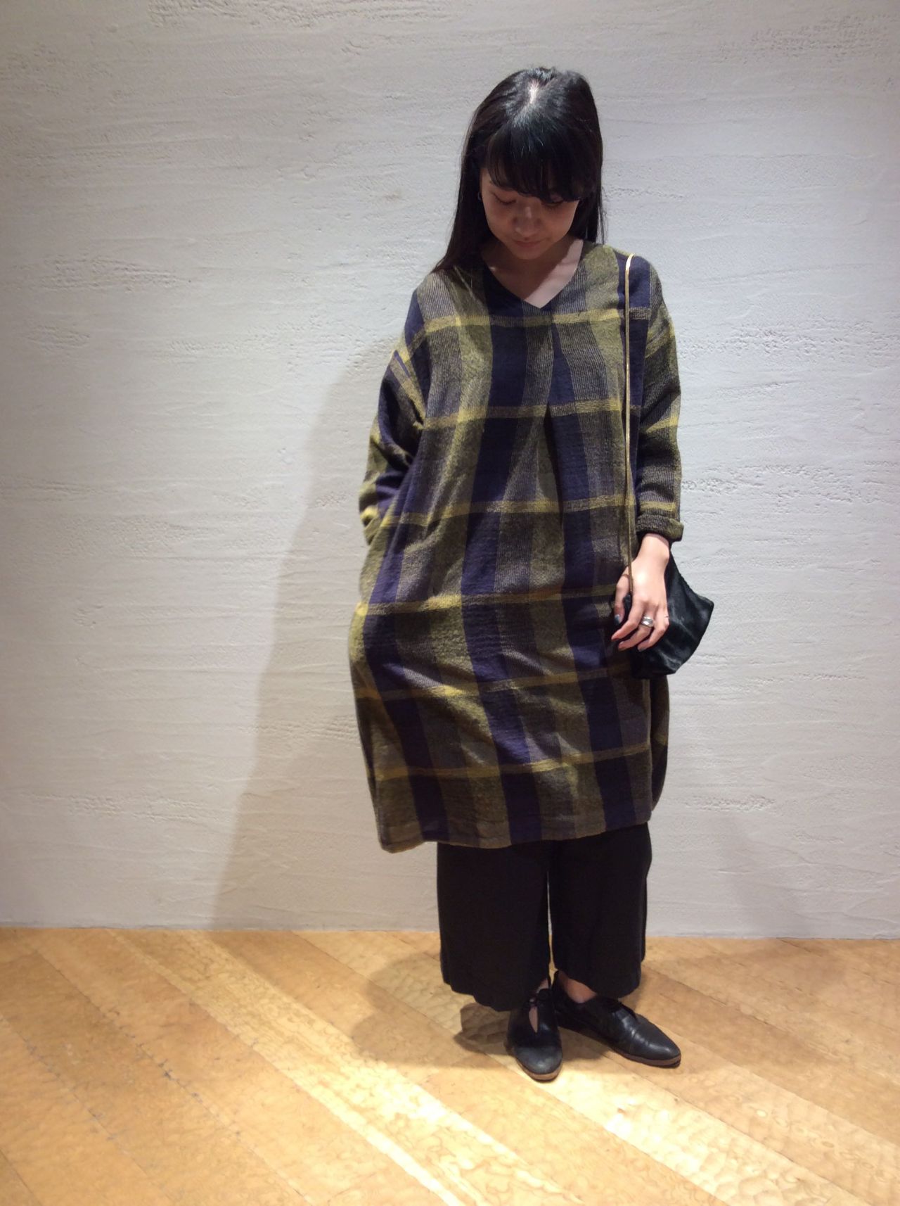 先染めウールチェックワンピース(着用:ネイビー .size34)