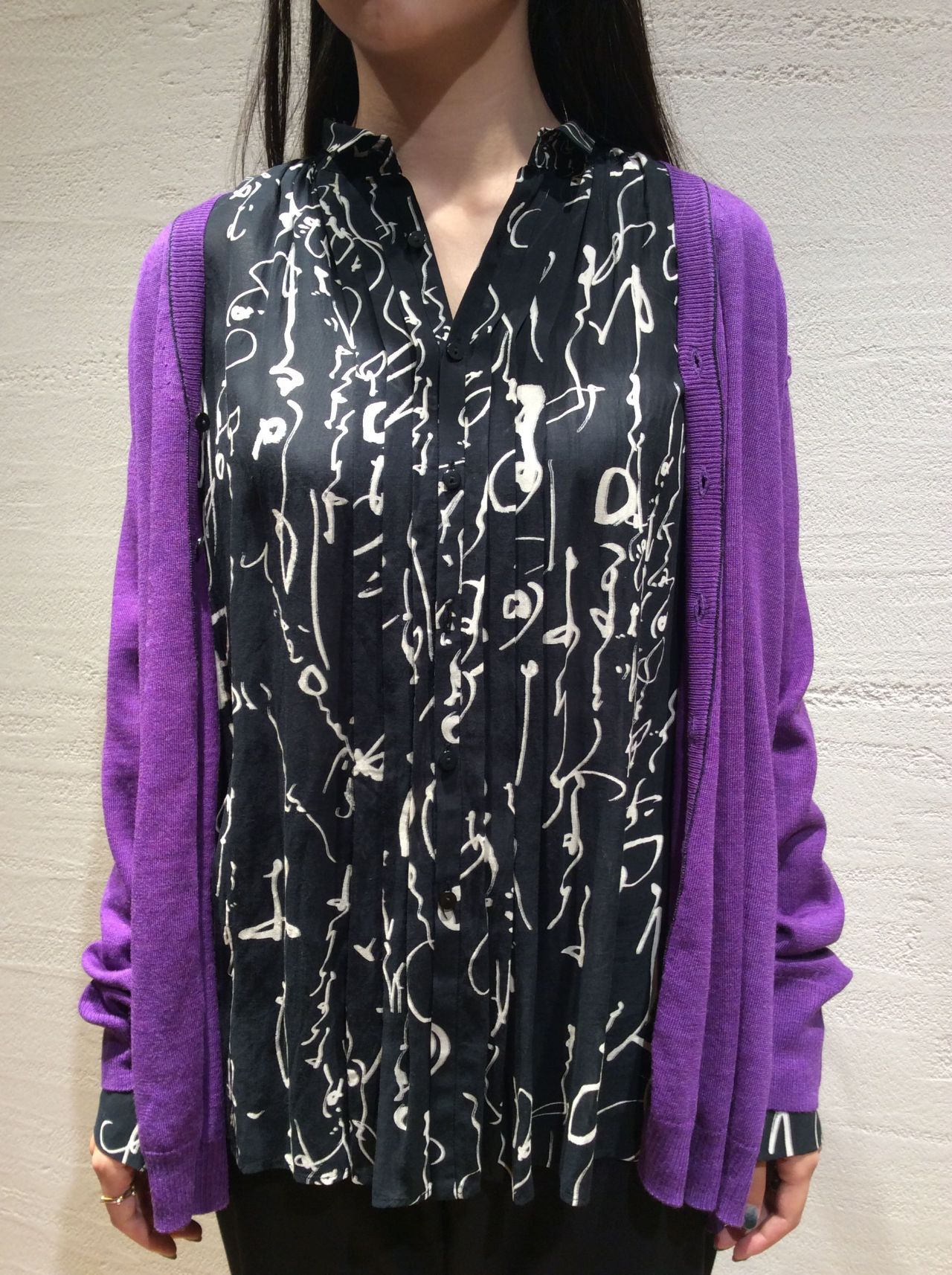 エクストラファインメリノウールカーディガン(着用:パープル)