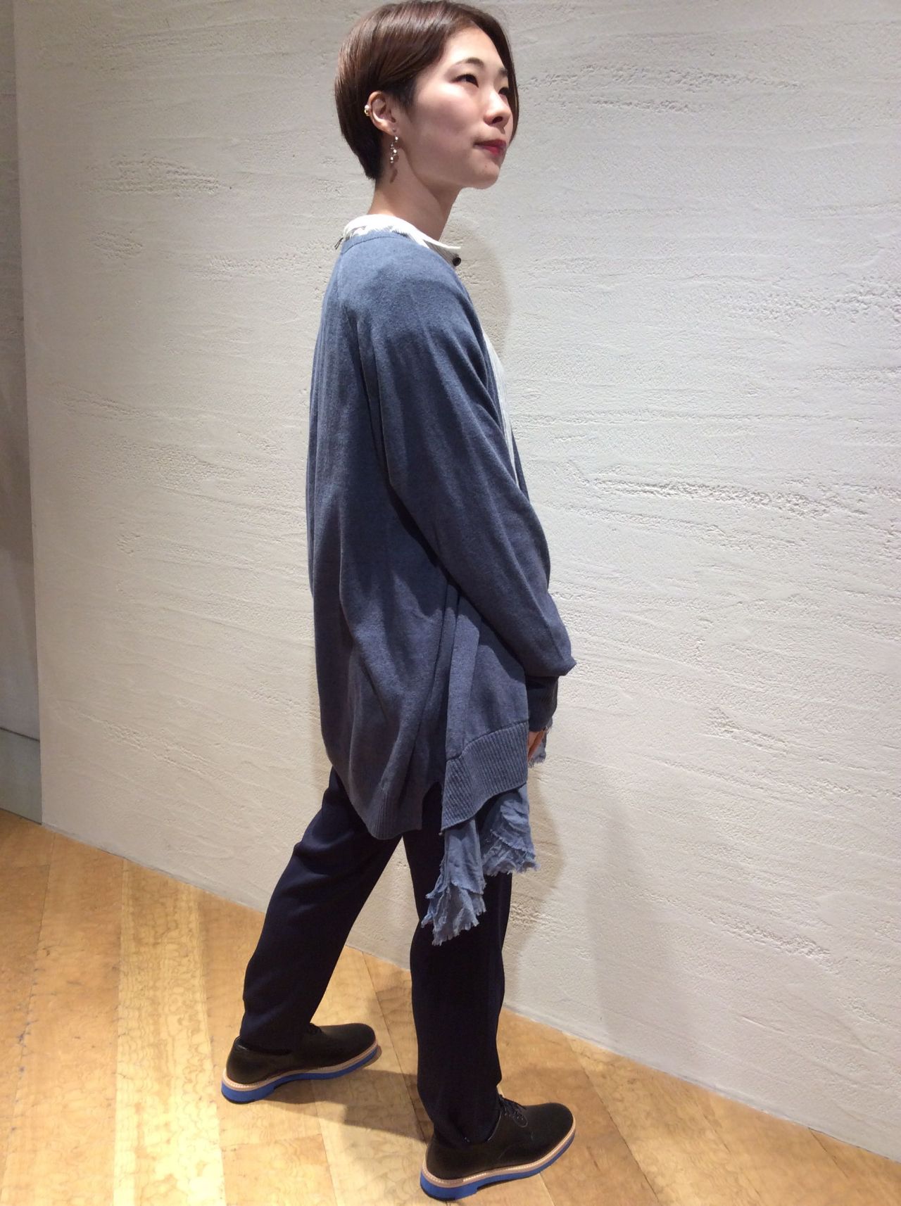 植物染め・コットン・ウールハオリカーディガン(着用:ブルー)