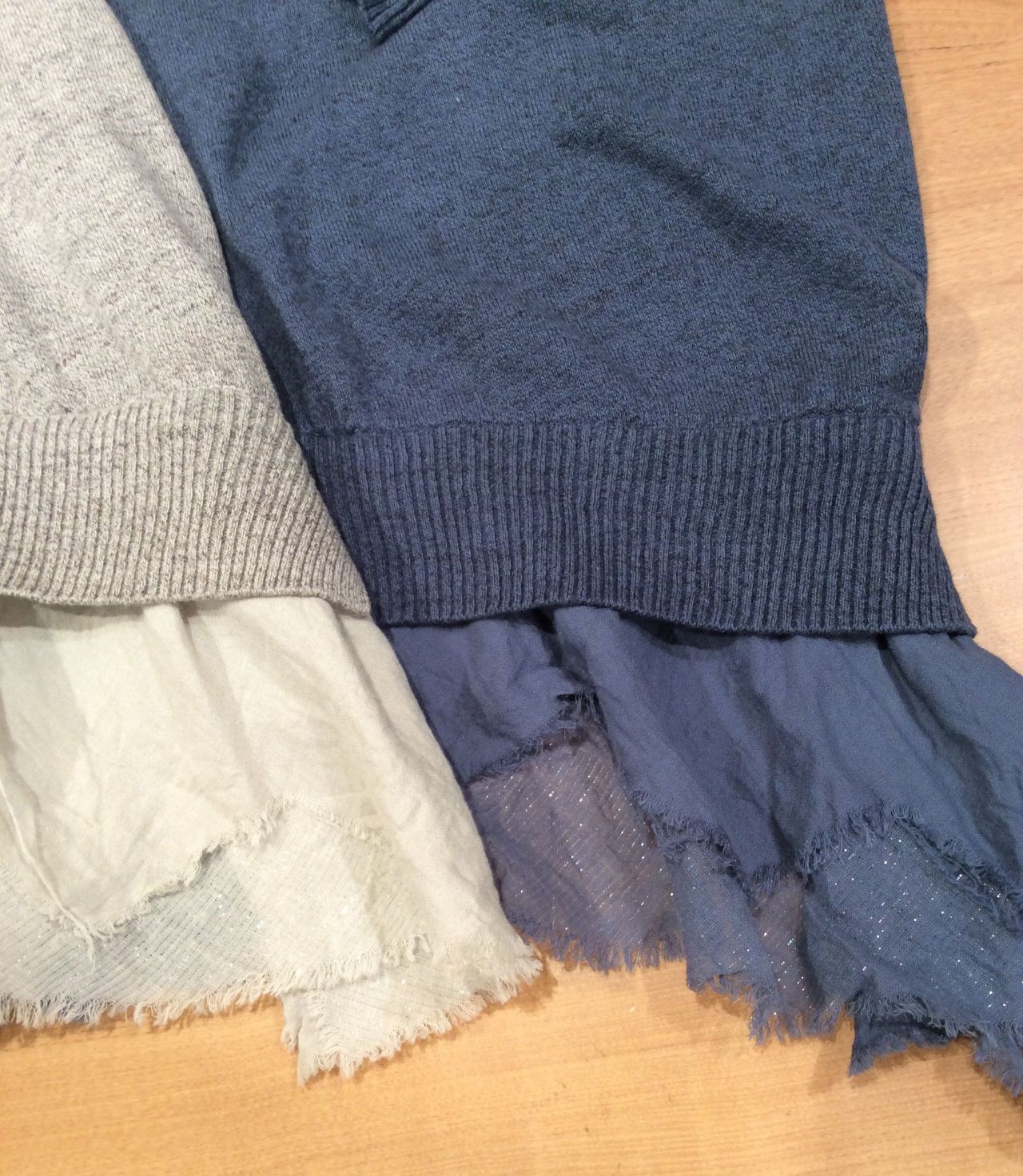 前裾丈をイレギュラーにして布帛飾りをあしらいました。