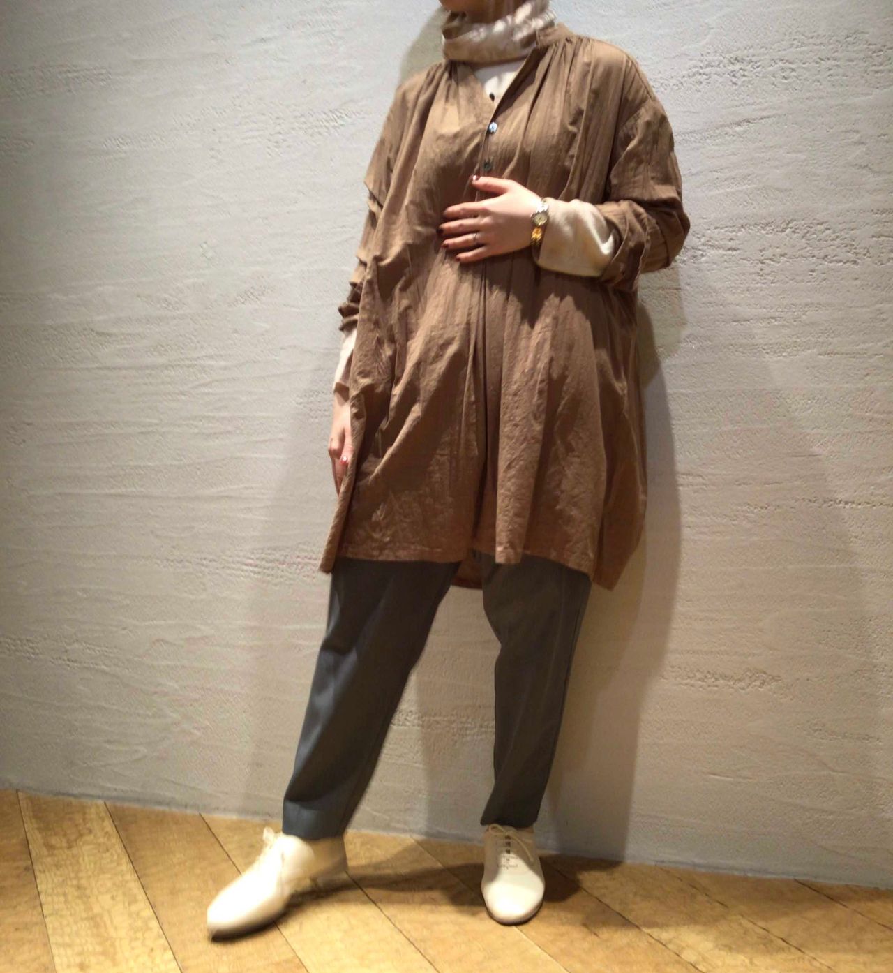 1枚でも絵になりますが、軽くて柔らかいのでブラウスのインにもおすすめですよ。